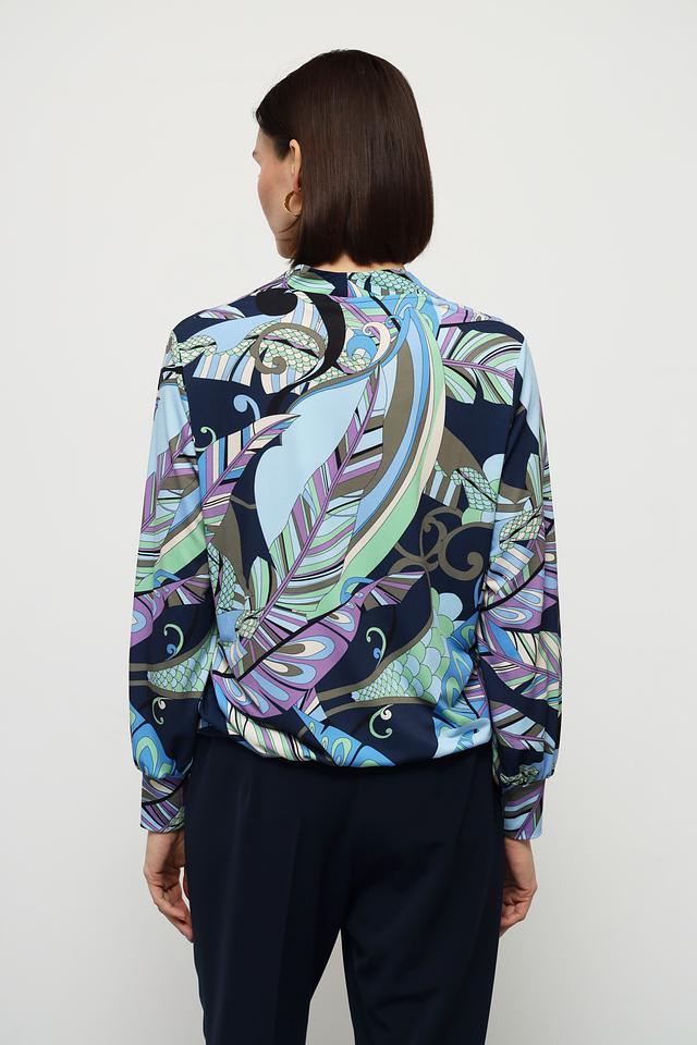 Блуза Bianca синего цвета с ярким абстрактным принтом станет стильным дополнением к вашему гардеробу. Модель выполнена из лёгкой ткани с добавлением эластана, что обеспечивает комфорт при носке и свободу движений. Состав: полиэстер 95%, эластан 5%