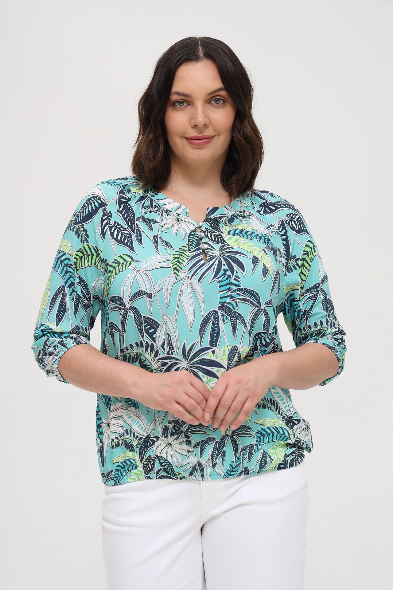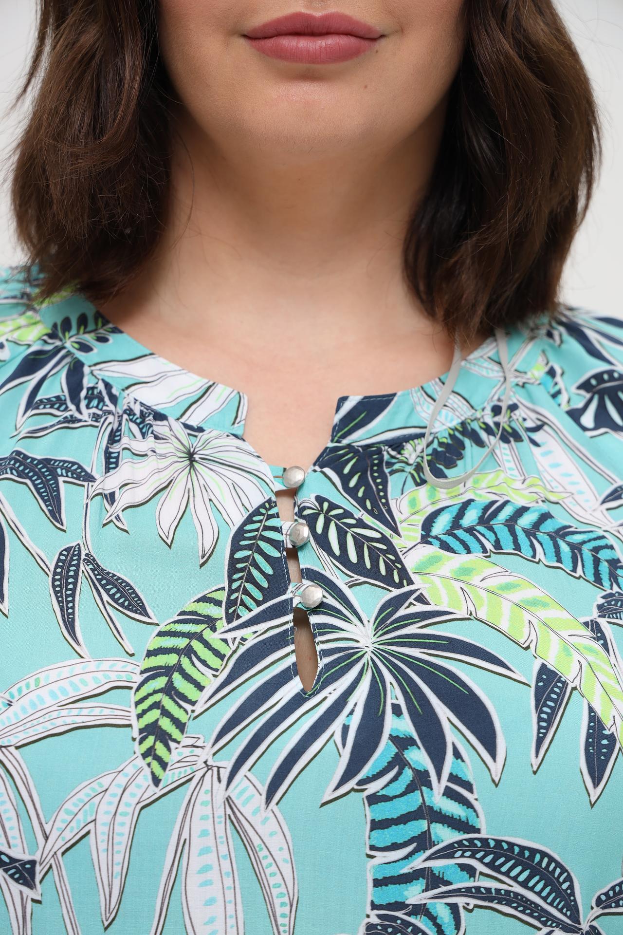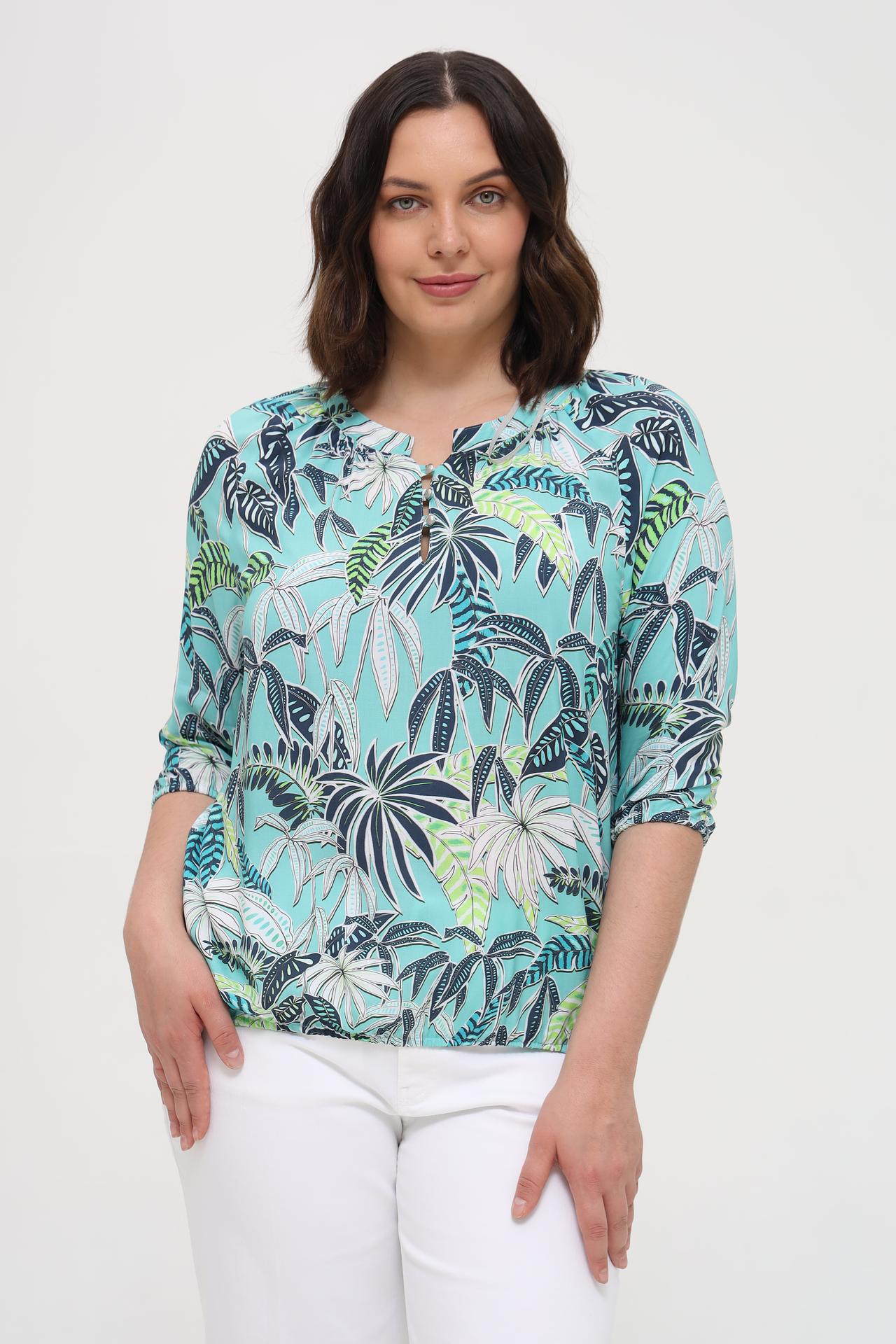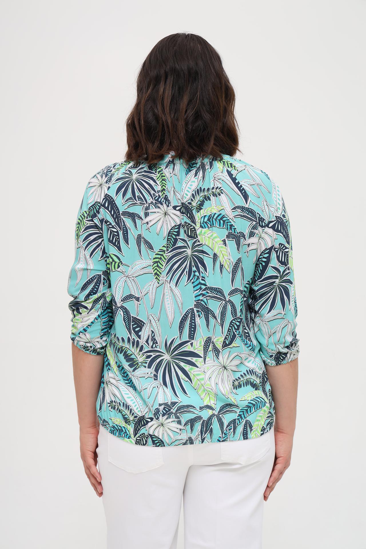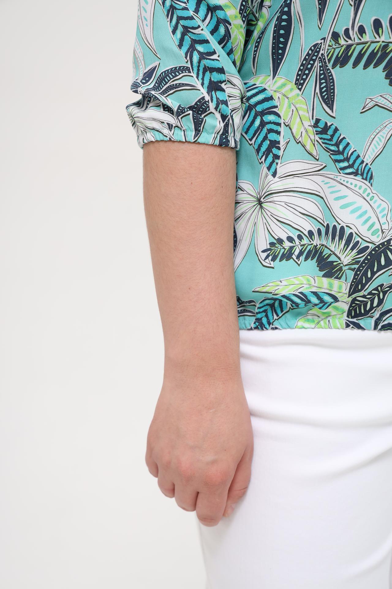 Блуза Erfo, бирюзовая с тропическим принтом и пуговицами