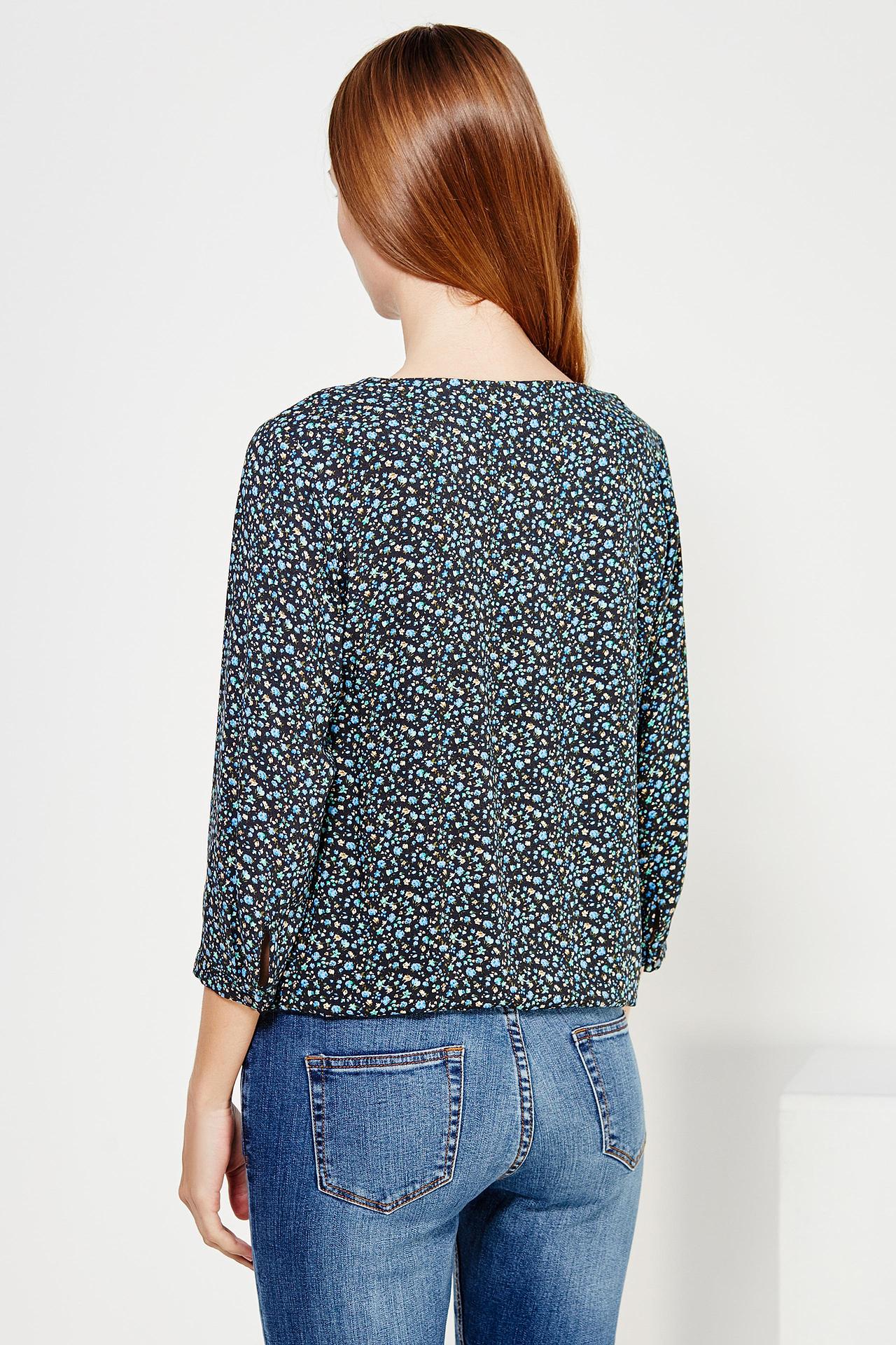 Блуза FINN FLARE женская, чёрная с цветочным принтом