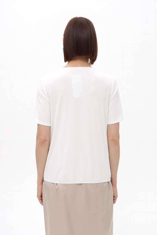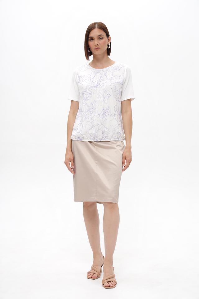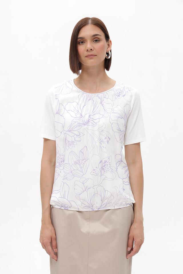 Блузка имеет свободный крой, который не стесняет движений и обеспечивает комфорт в течение дня. Короткие рукава делают её идеальным выбором для теплой погоды. Круглый вырез горловины подчеркивает изящество линии шеи.