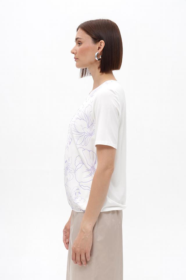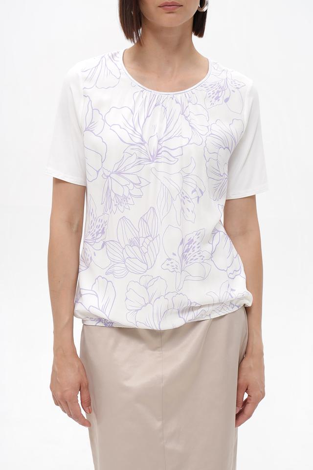Белая блузка Frank Walder с деликатным цветочным принтом, выполненная из мягкой вискозы с добавлением эластана. Модель имеет свободный крой и короткие рукава, обеспечивающие комфорт и лёгкость в носке. Состав: вискоза 93%, эластан 7%