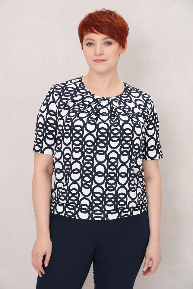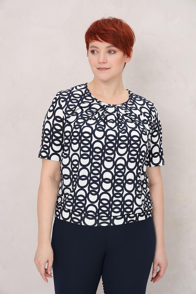 Модель имеет прямой крой, короткие рукава и округлый вырез горловины. Блуза выполнена из высококачественной вискозы с добавлением эластана, что делает её приятной к телу, мягкой и эластичной.