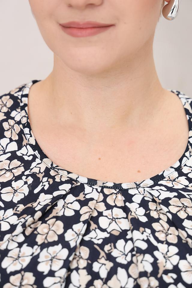 Эта блуза от Frank Walder – идеальный выбор для создания элегантного и женственного образа. Блуза выполнена в темно-синем цвете и украшена мелким цветочным принтом, который придает ей особую изысканность.