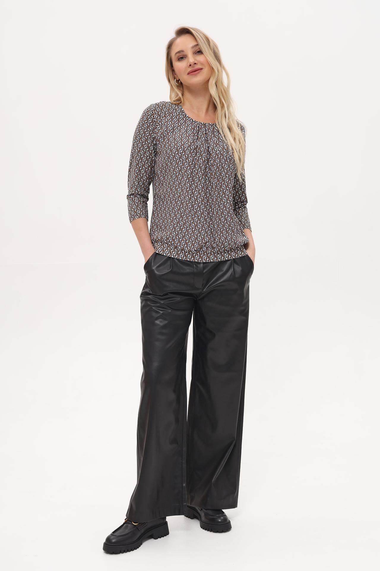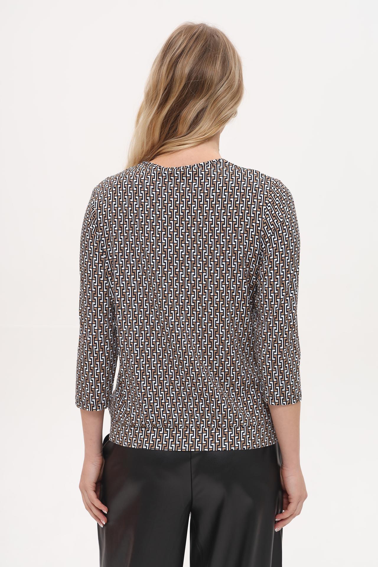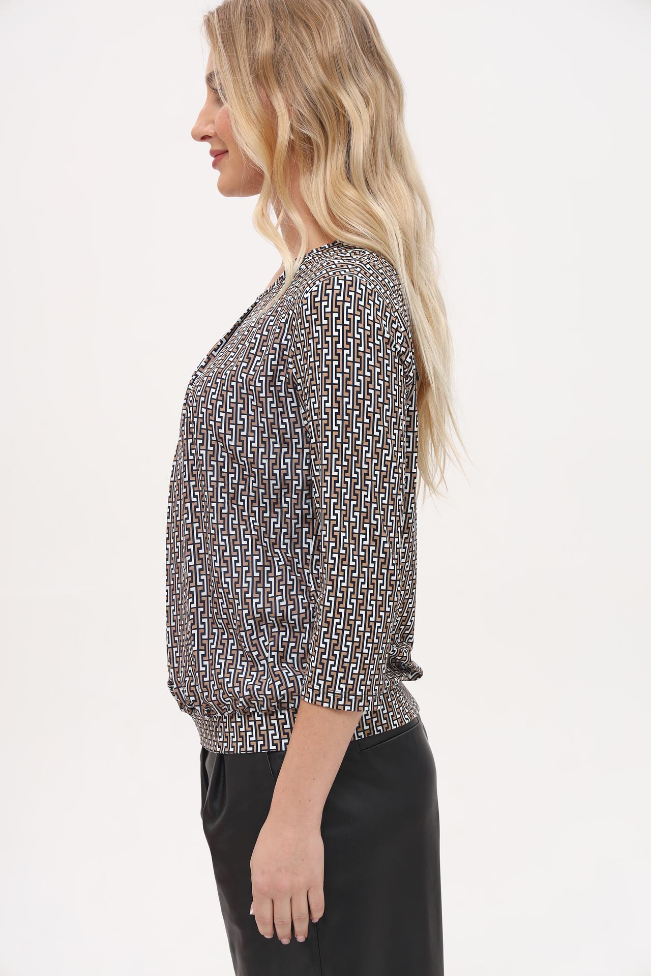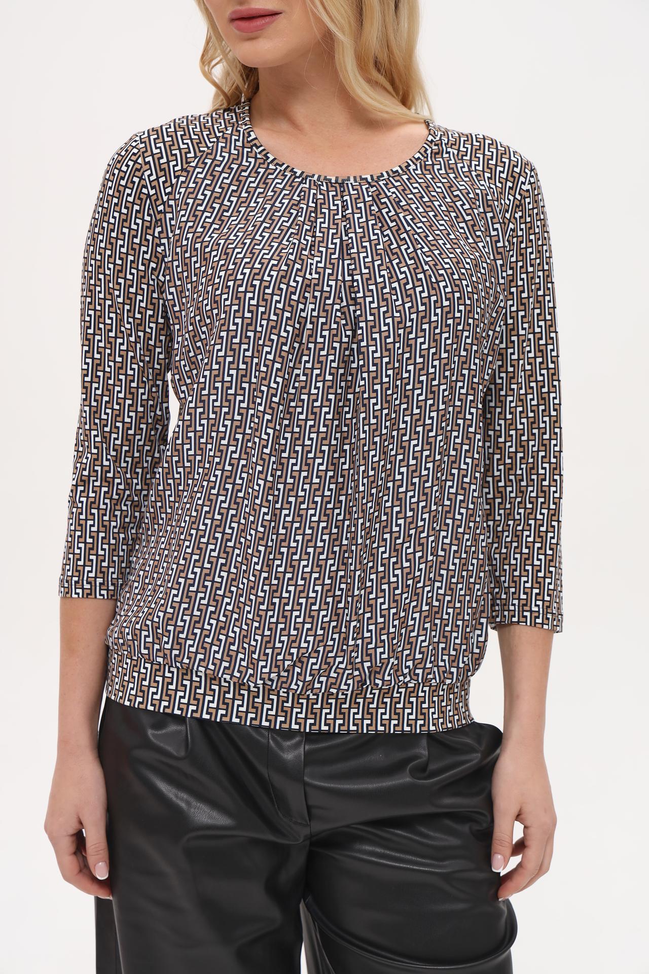 Стильная блуза Frank Walder из высококачественной вискозы с добавлением эластана – идеальный выбор для создания комфортного и элегантного образа. Ткань приятна к телу, хорошо драпируется и не мнётся. Модель с оригинальным геометрическим принтом, центральной сборкой и укороченным рукавом 3/4.