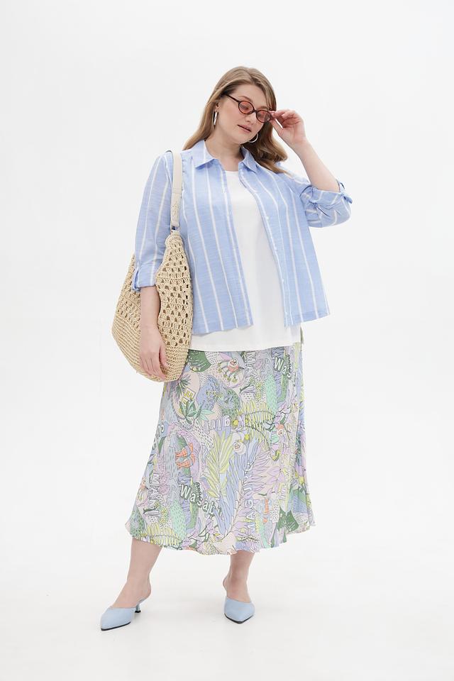 Блузка имеет легкую текстуру, что придает ей дополнительный шарм. Отличный выбор для тех, кто ценит комфорт и стиль в каждой детали.