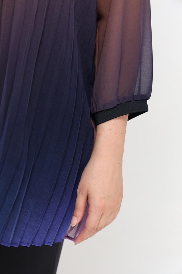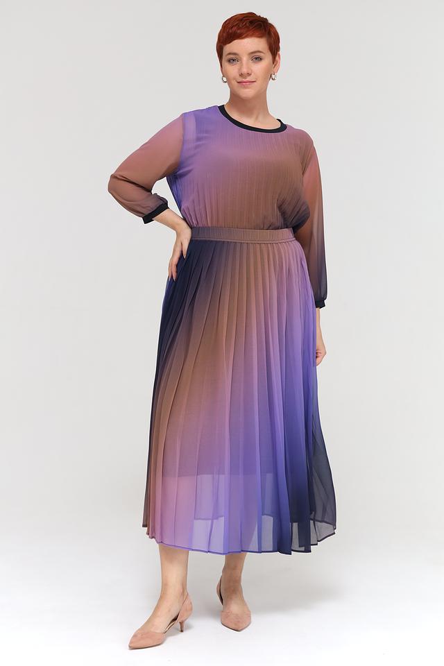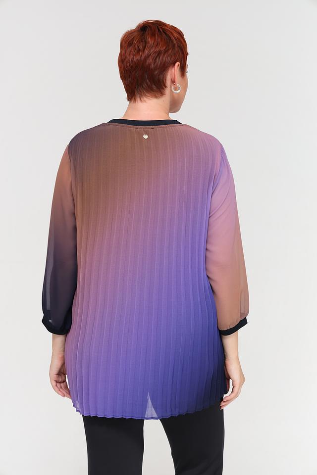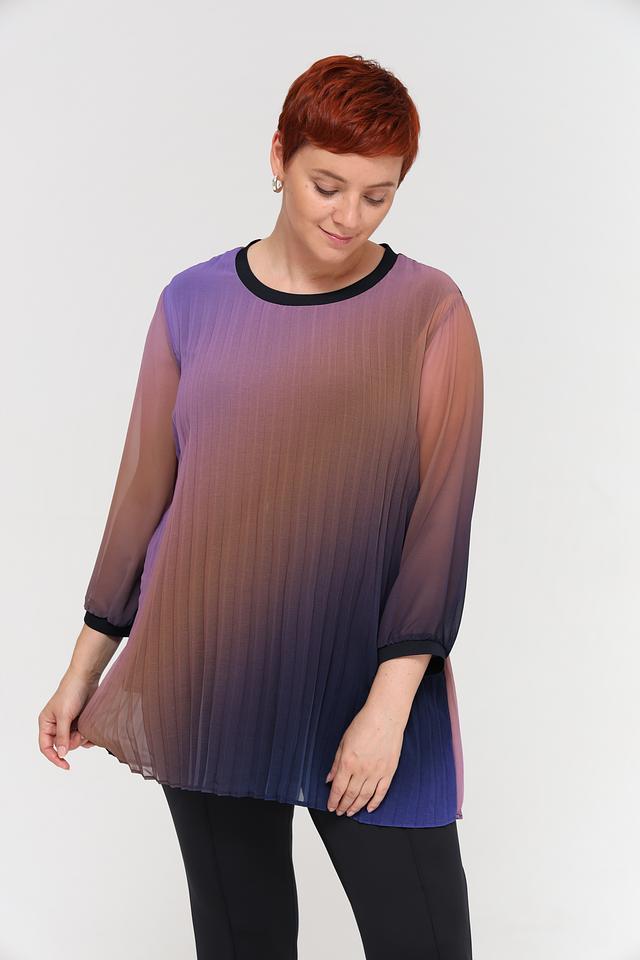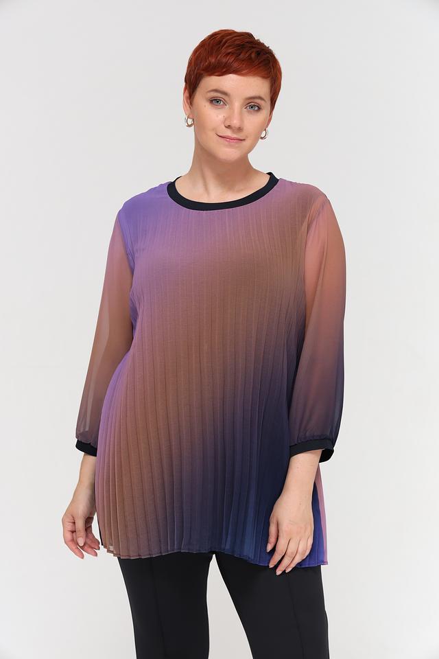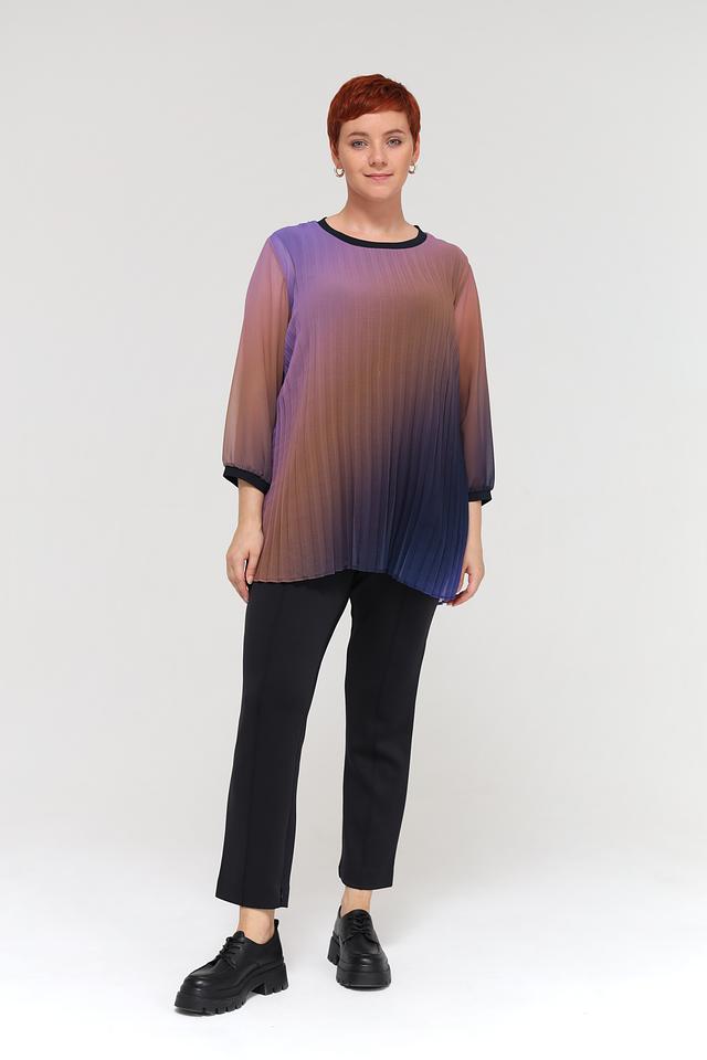 Блуза Frapp выполнена в технике омбре, сочетая в себе переходы от фиолетового к коричневому и синему. Изготовлена из 100% полиэстера, что обеспечивает легкость и комфорт в носке. Состав: полиэстер 100%