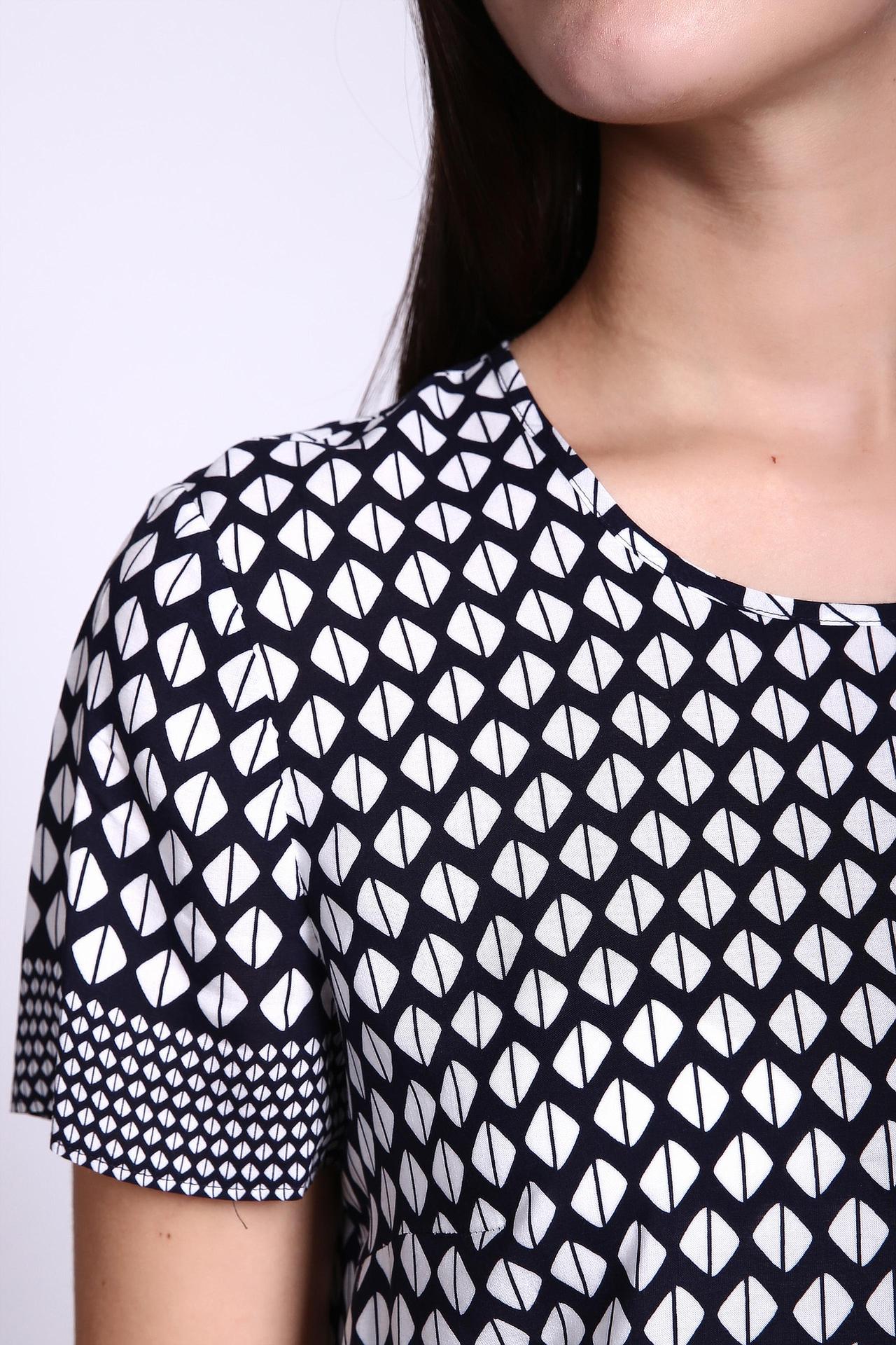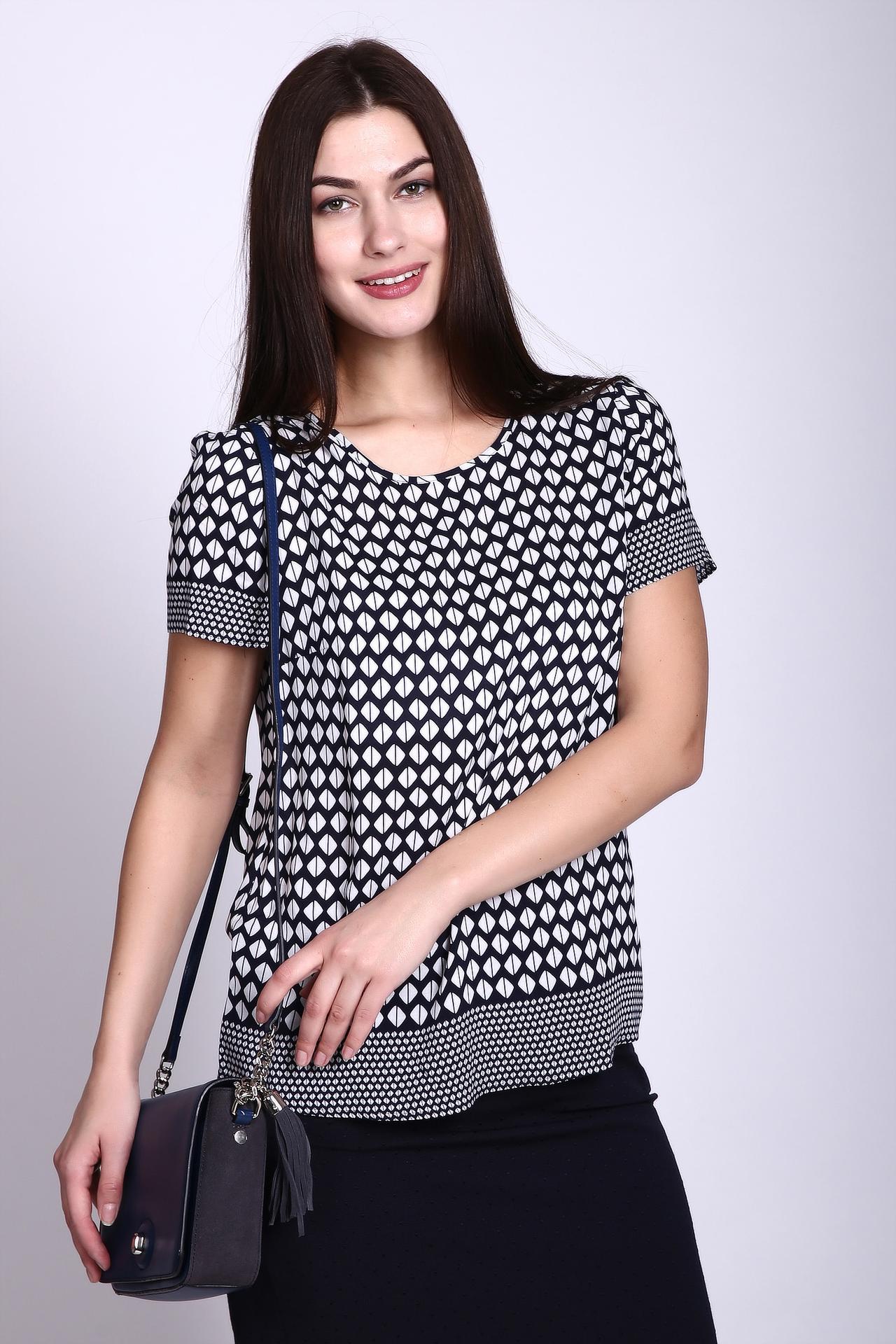 - Оригинальный принт: Чёрно-белый узор добавляет изысканности и делает блузу запоминающейся.
