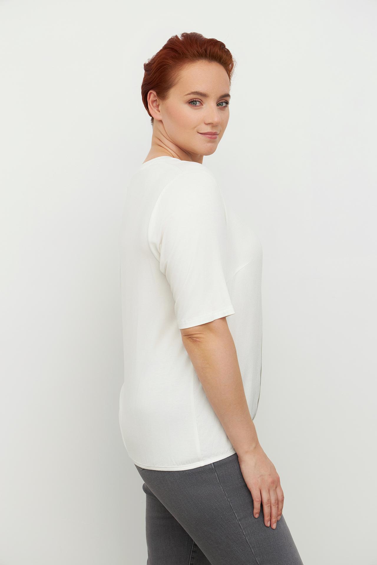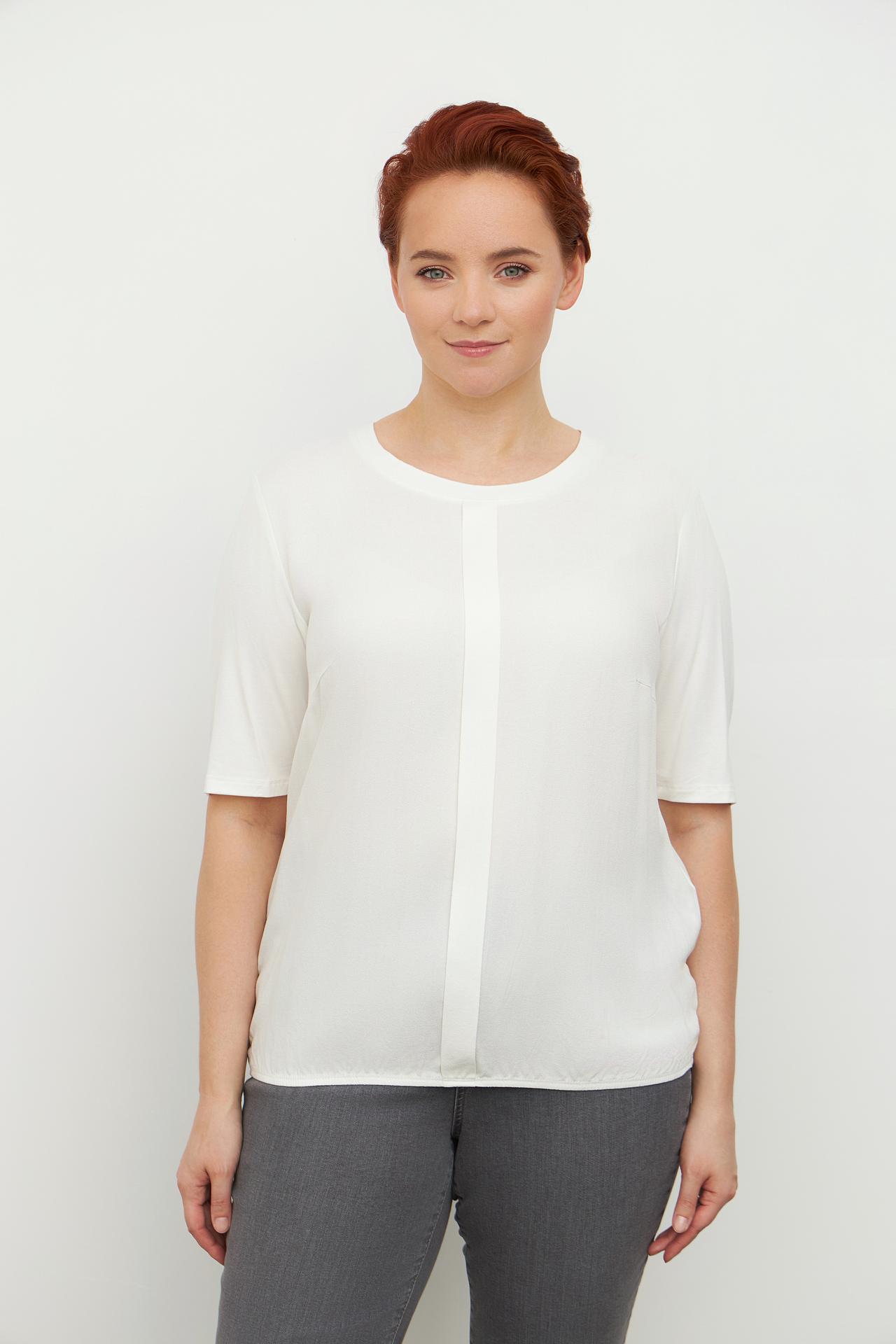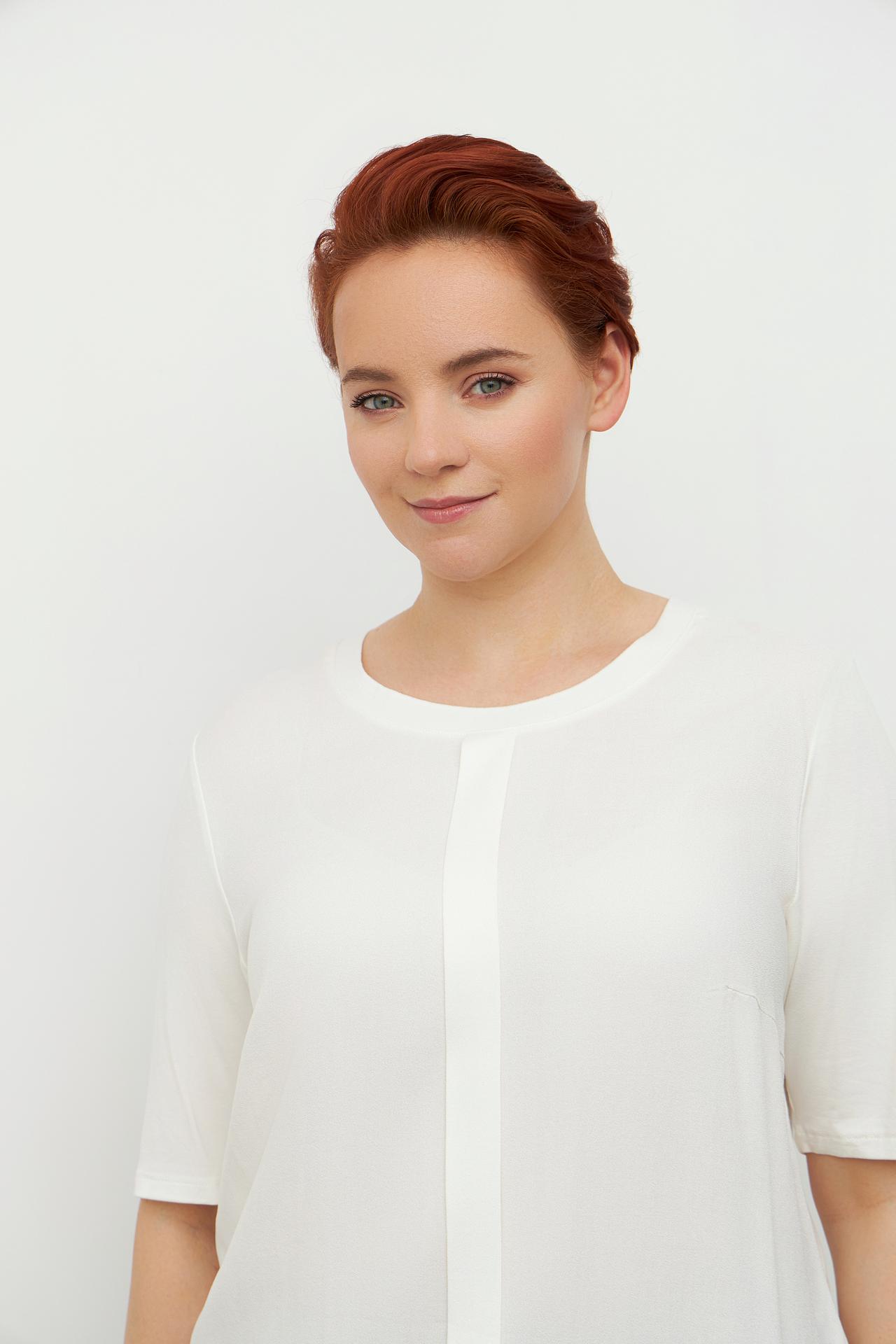 Благодаря добавлению эластана, блуза приятна к телу, не сковывает движения и сохраняет форму после стирки. Вискоза придает материалу мягкость, воздухопроницаемость и легкий блеск. Ткань не мнется, что очень практично в повседневной жизни.