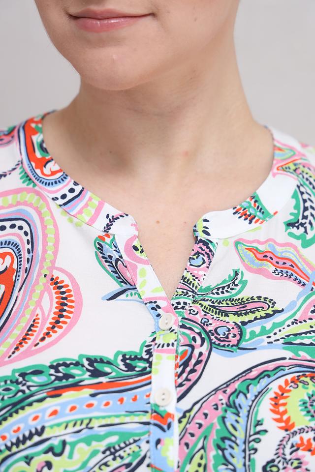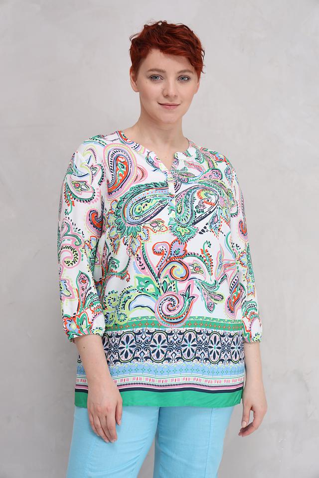 Белая блуза Lebek с ярким цветочным принтом в стиле пейсли станет отличным дополнением к вашему гардеробу. Модель выполнена из мягкой вискозы, обеспечивающей комфорт в носке, и имеет рукава 3/4. Состав: вискоза 100%