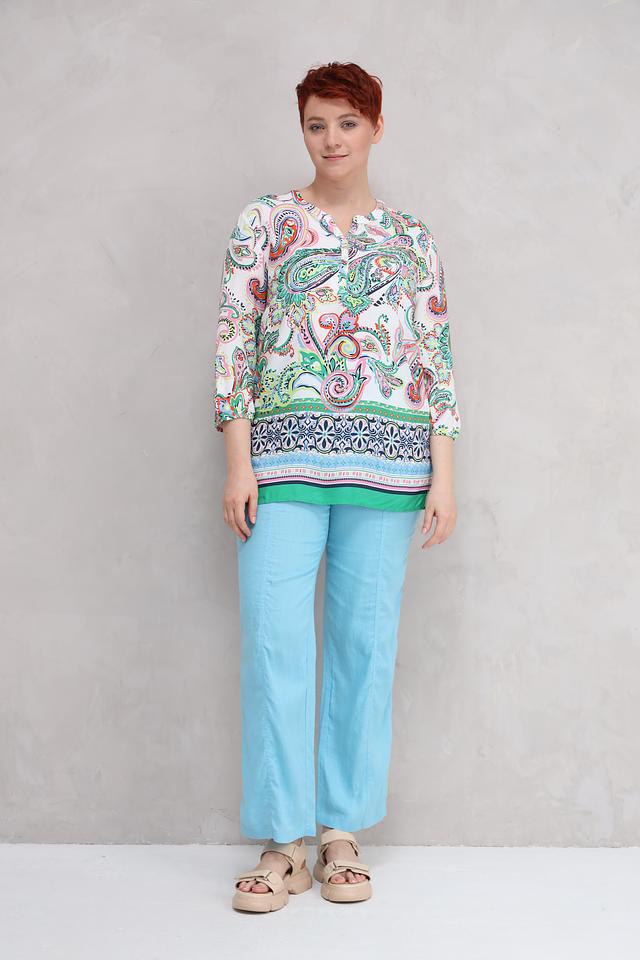 Эта блуза станет прекрасным выбором для женщин, ценящих комфорт, стиль и качество. Она легко сочетается с различными предметами гардероба, такими как брюки, юбки и джинсы, позволяя создавать разнообразные и интересные образы.
