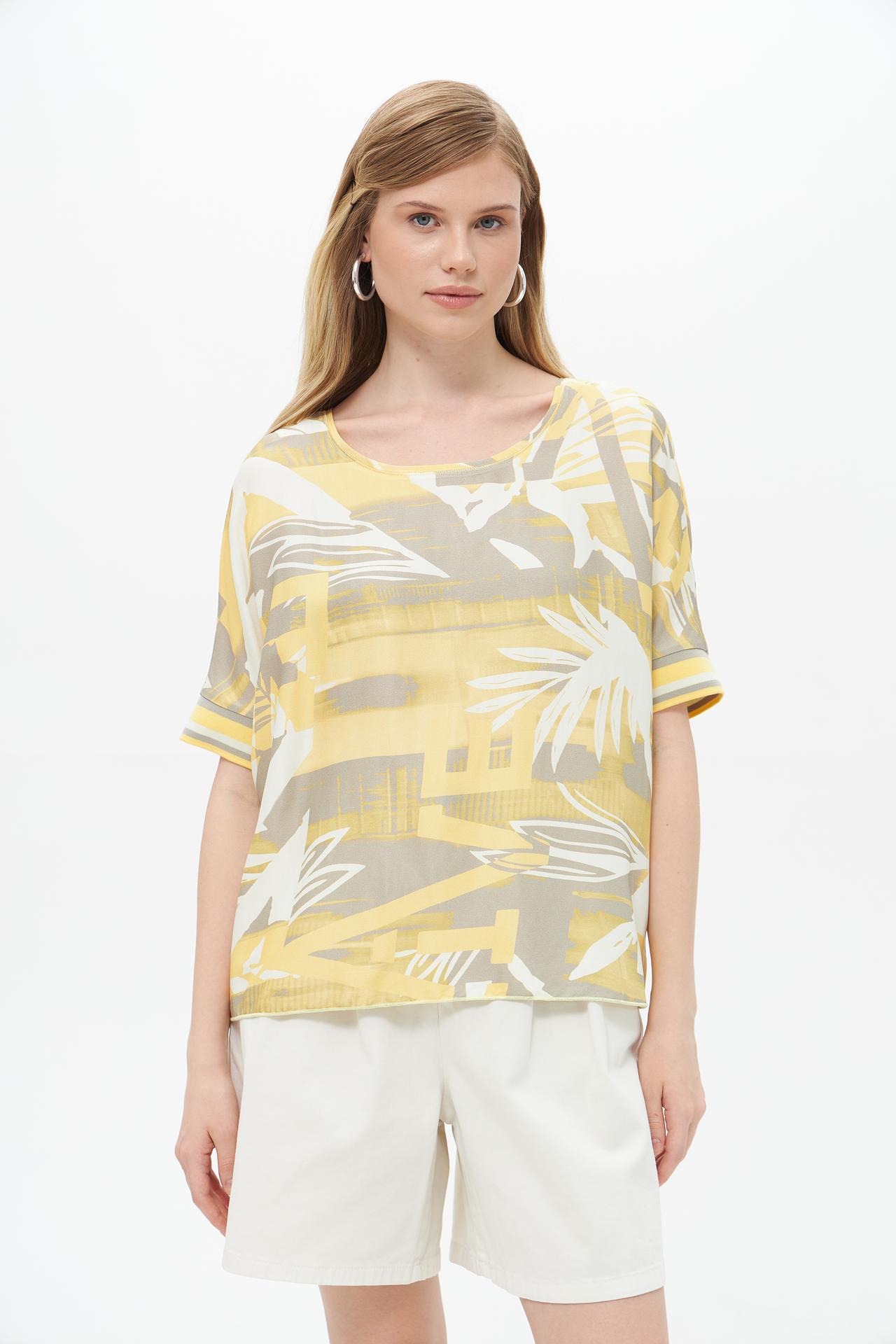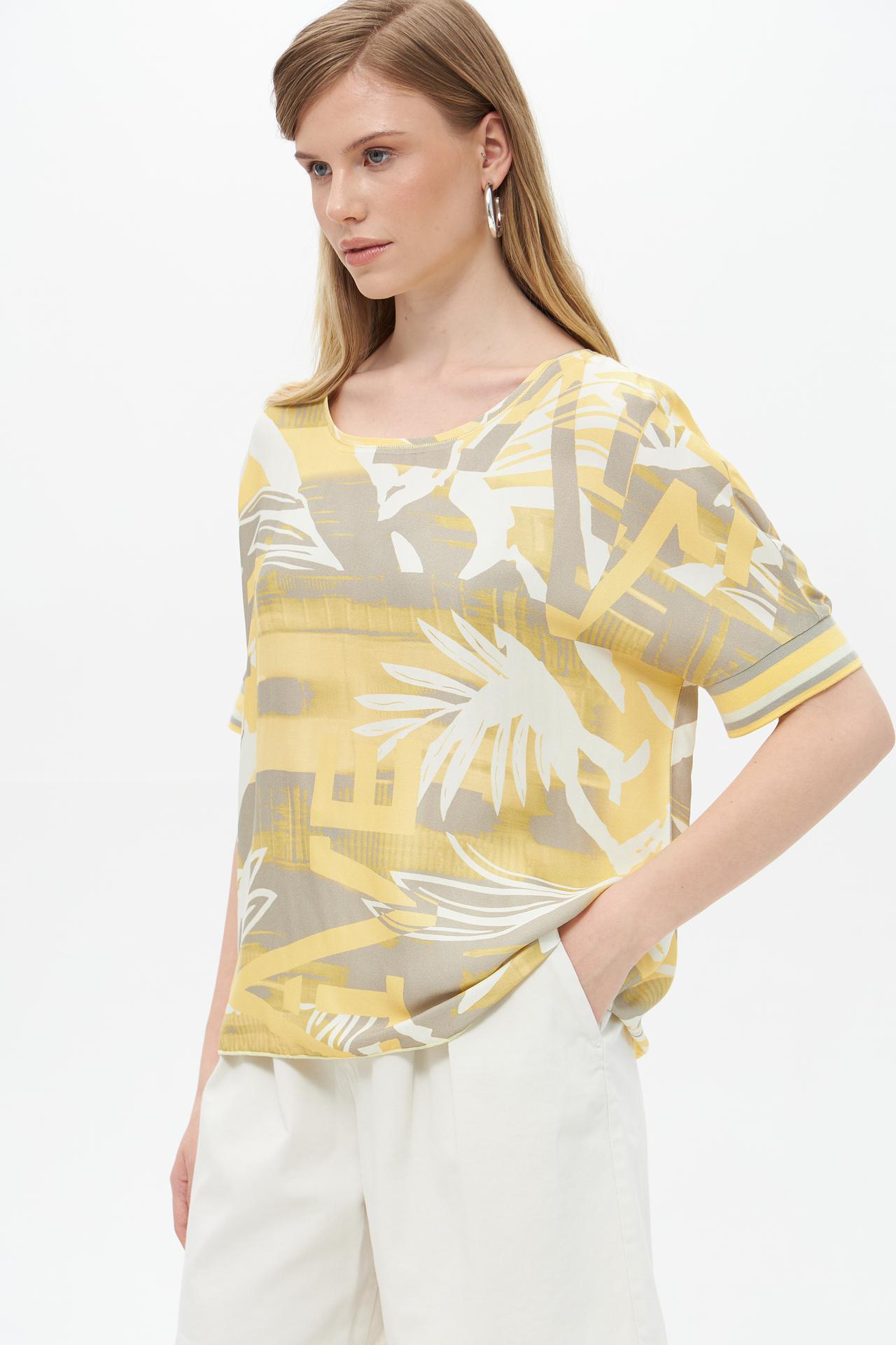 Изысканная блуза Lecomte с оригинальным тропическим принтом станет ярким акцентом в вашем гардеробе. Благодаря свободному крою и приятной к телу ткани (96% вискоза, 4% эластан), эта блуза обеспечит вам комфорт и свободу движений в течение всего дня. Отличный выбор для создания стильных и непринужденных образов.