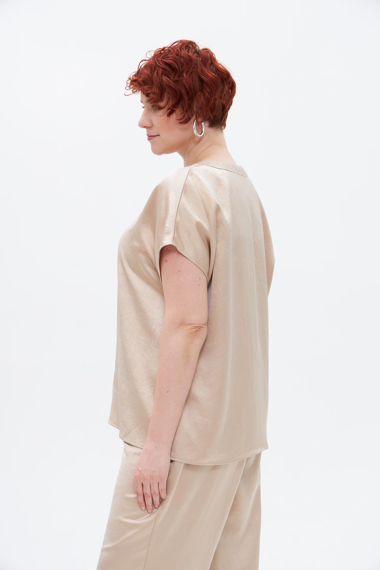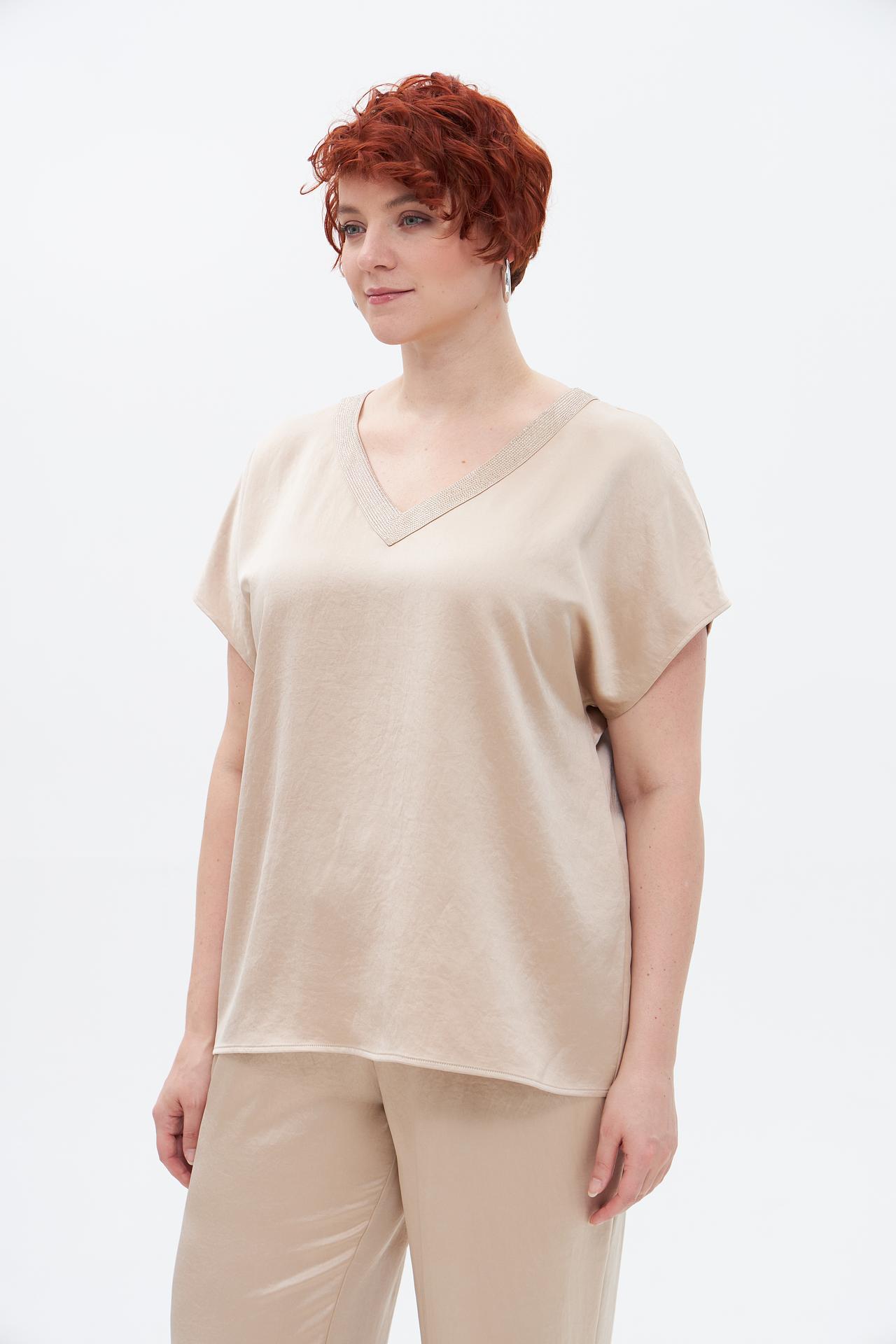 - Элегантный силуэт: Блуза подчеркивает достоинства фигуры, создавая женственный и утонченный образ.