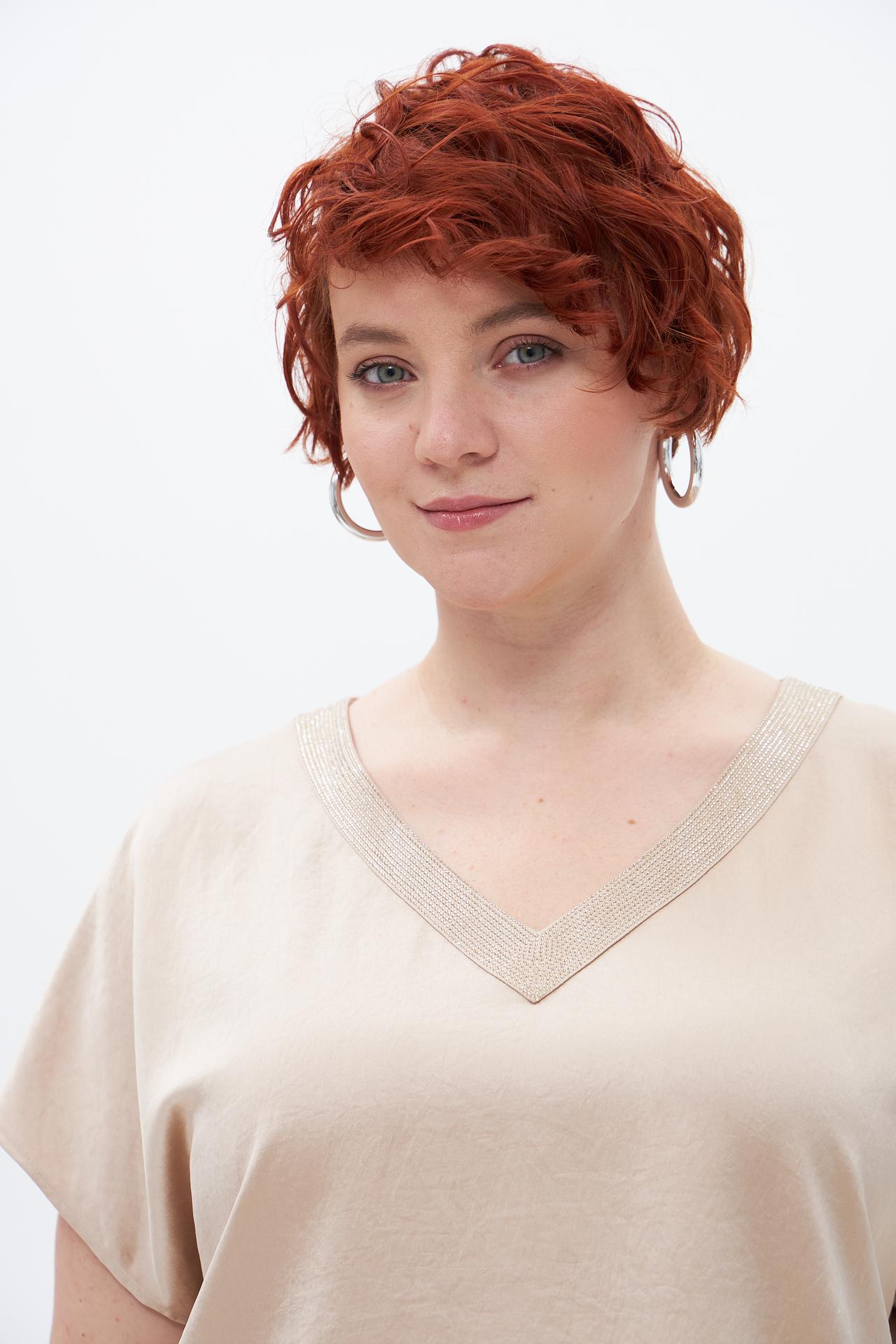 - Лёгкость и комфорт: Блуза выполнена из 100% полиэстера, что обеспечивает её невесомость и приятное ощущение на коже.