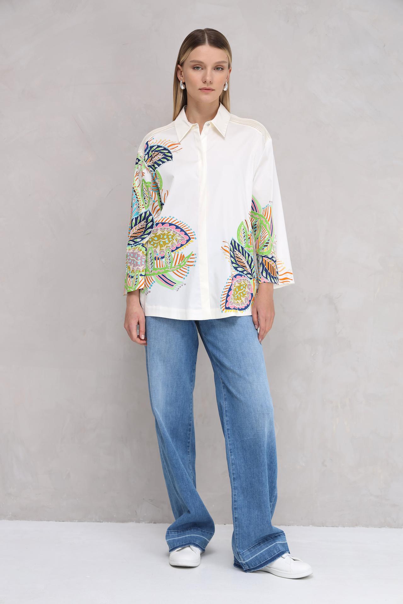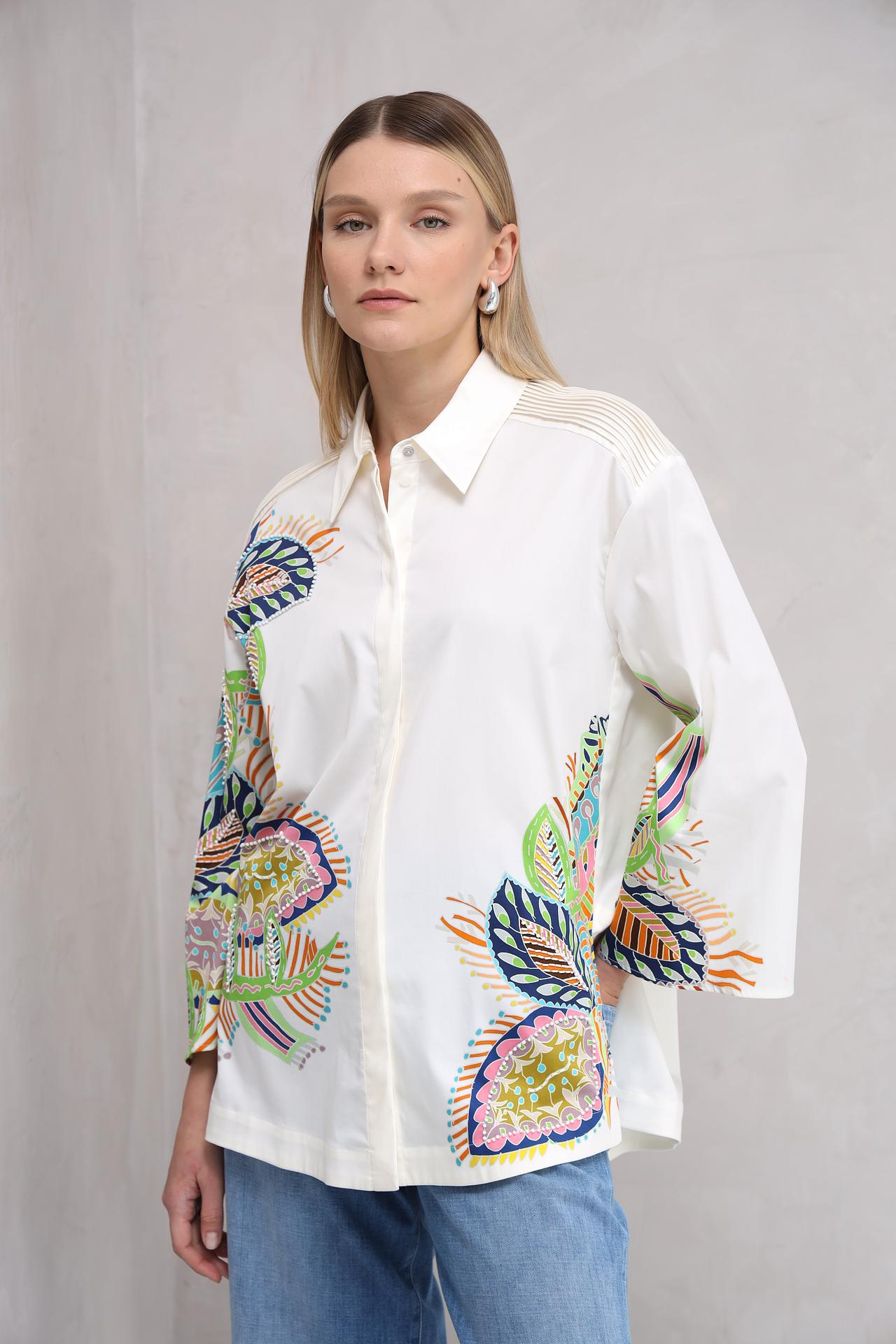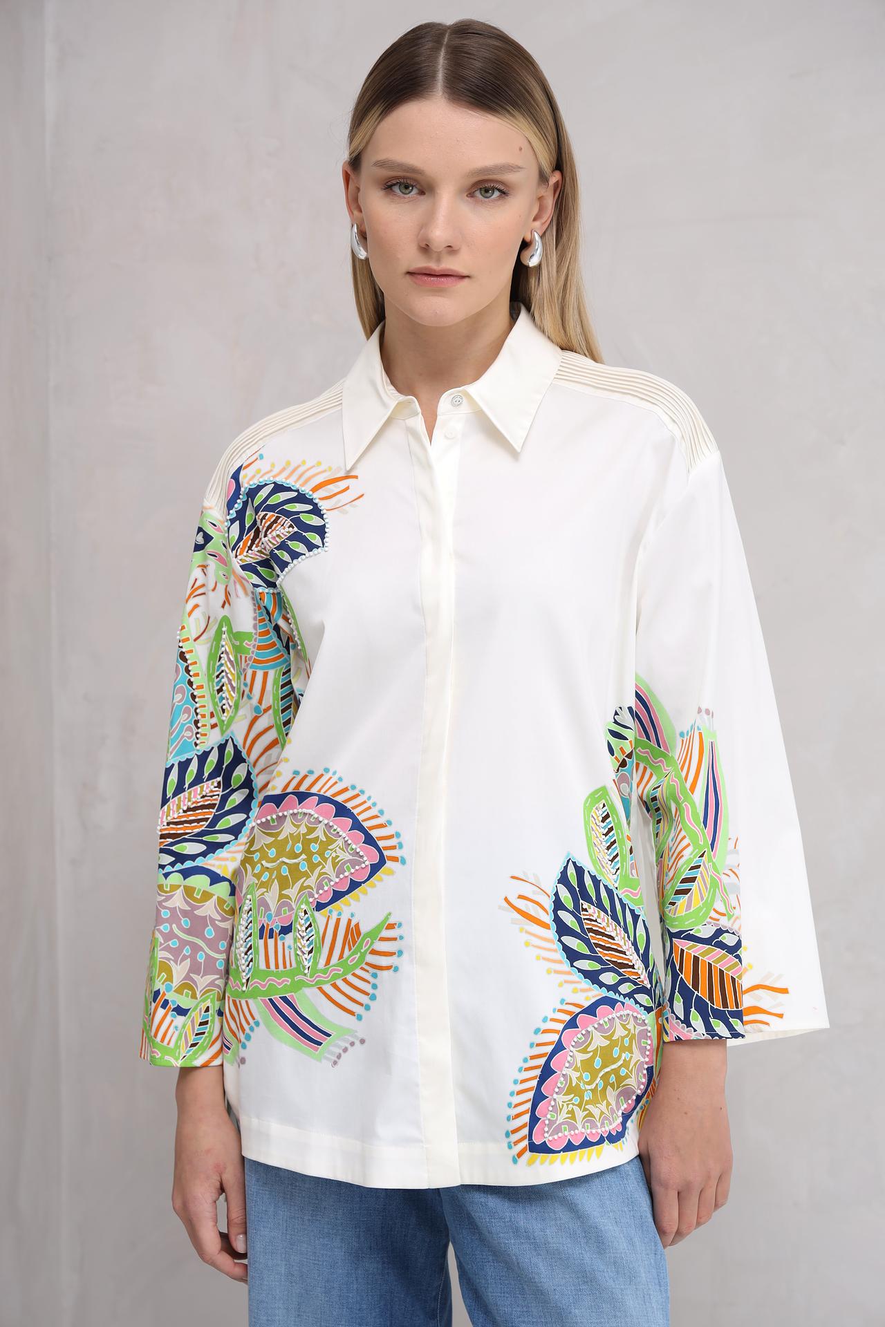 Сочетание классического кроя и оригинального дизайна делает эту блузу идеальным выбором как для повседневной носки, так и для особых случаев. Она легко комбинируется с различными элементами гардероба, позволяя создавать стильные и неповторимые образы.