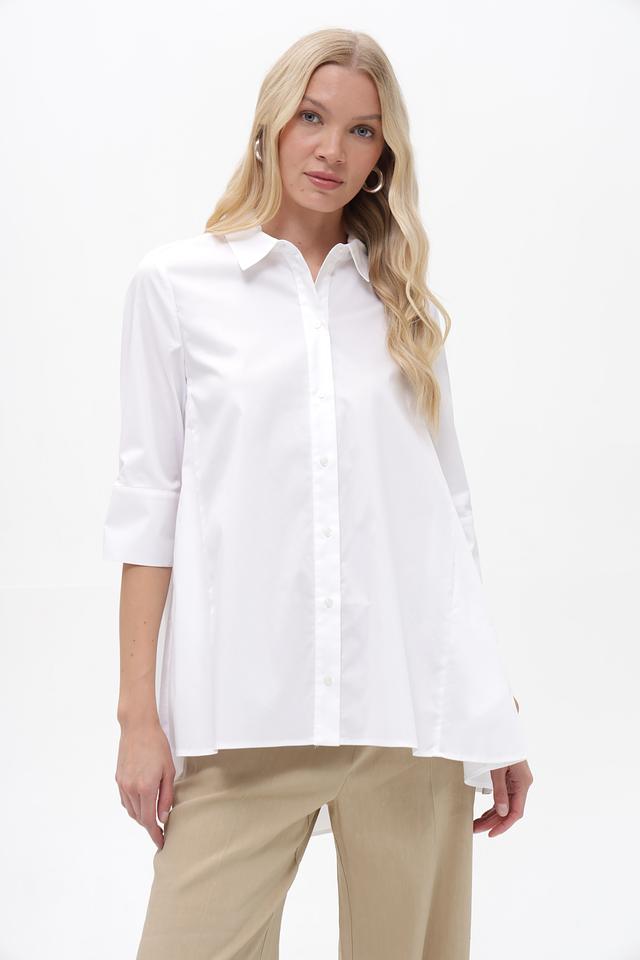 Белая блуза Catnoir — это стильная и универсальная модель с рукавом 3/4 и классическим воротником. Выполнена из качественного хлопка с добавлением нейлона и спандекса для комфорта и долговечности. Состав: хлопок 74%, нейлон 23%, спандекс 3%
