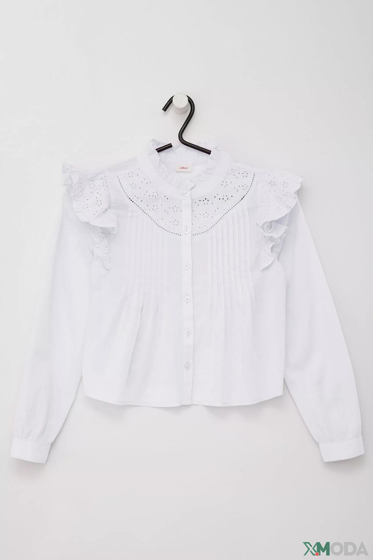 Блуза s.Oliver белая, с воланами и вышивкой