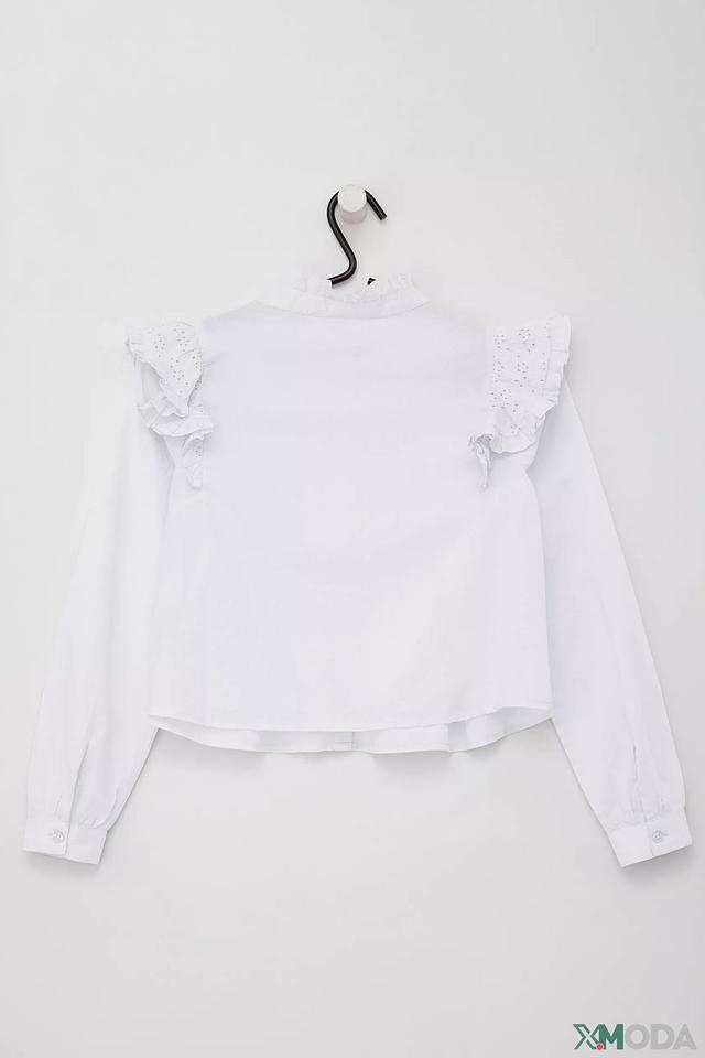 Белая блуза от s.Oliver для девочек, выполненная из 100% хлопка. Модель с длинными рукавами и декоративными рюшами на воротнике и плечах, застегивается на пуговицы. Состав: хлопок 100%