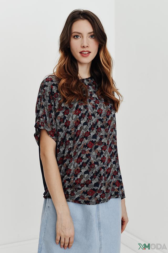 Модель имеет свободный крой и короткие рукава с небольшими сборками, что обеспечивает комфорт и свободу движений. Блуза выполнена из высококачественной вискозы с добавлением эластана, что делает ее приятной к телу и обеспечивает хорошую посадку.