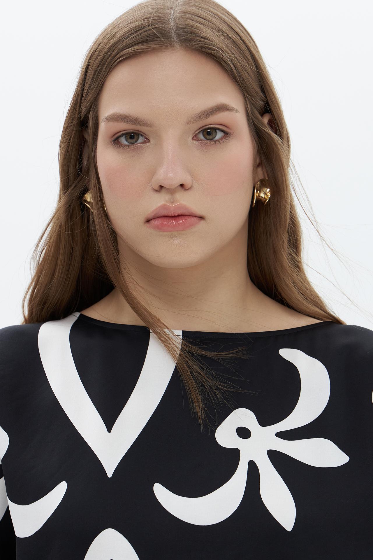 Блуза UNQ, черная с белым принтом