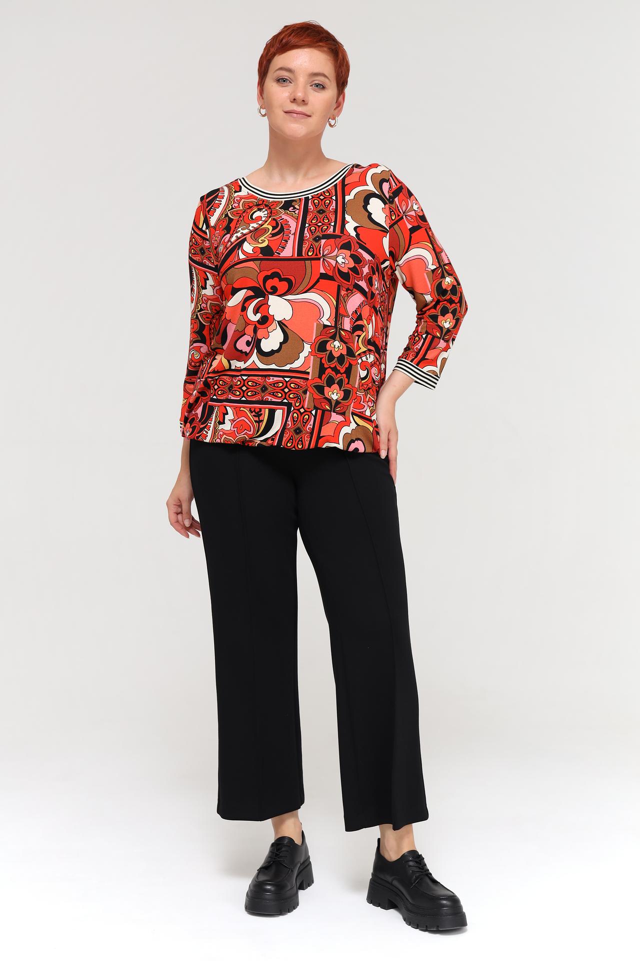 - Дизайн: Яркий принт придает блузке уникальный и запоминающийся вид, подчеркивая индивидуальность.