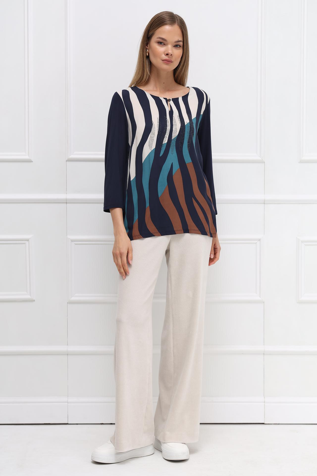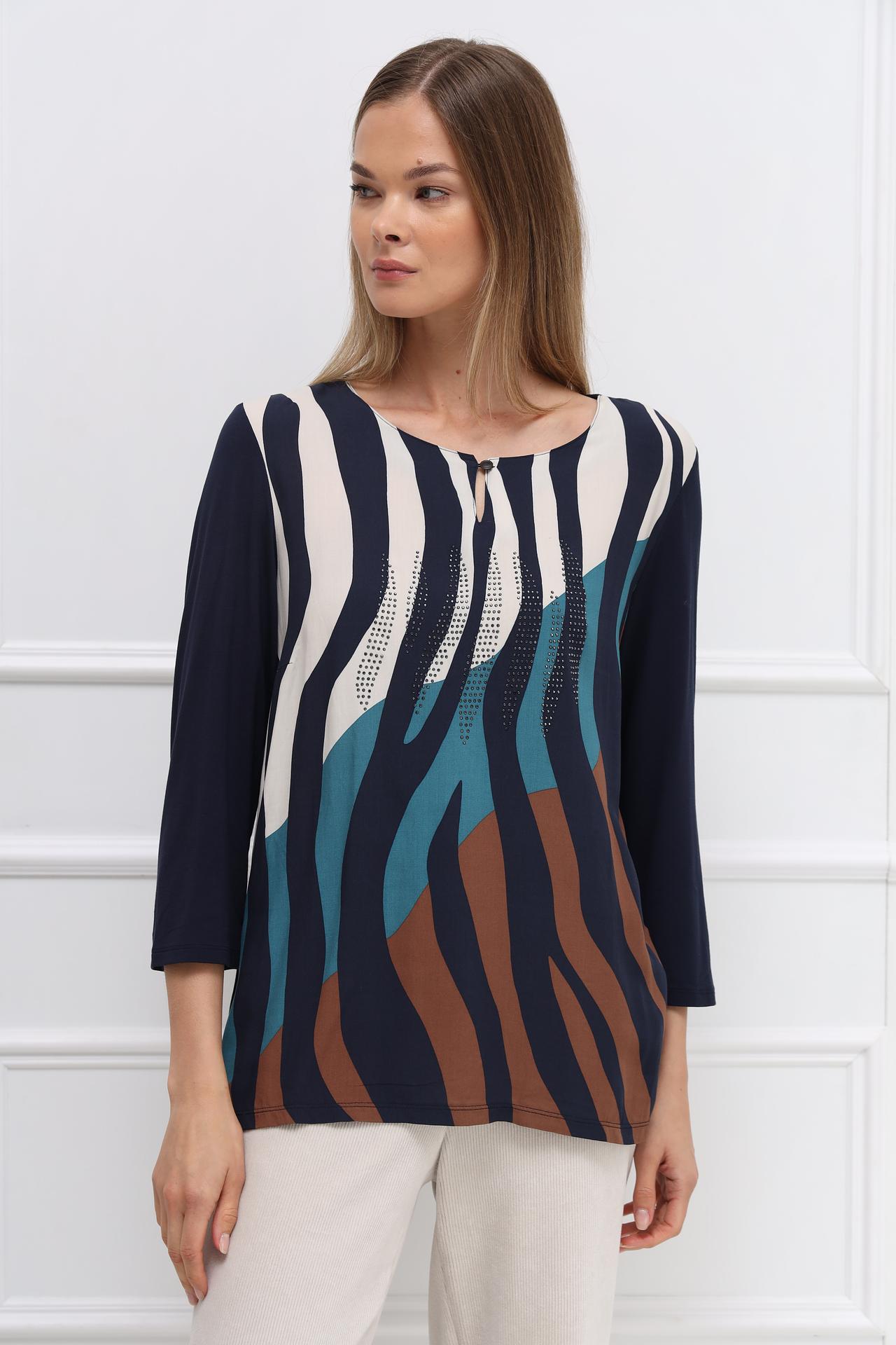 - Дизайн. Уникальный принт и деликатная отделка стразами добавляют шарма и изысканности. Эта блузка станет ярким акцентом в вашем образе.