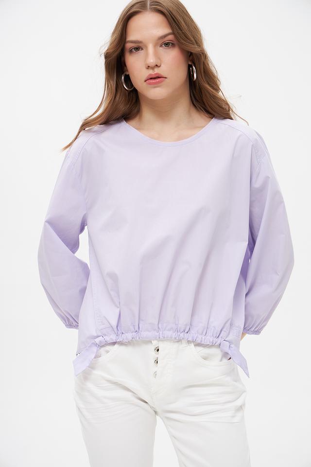 Лавандовая блуза от Marc Cain из 100% органического хлопка. Модель с рукавами-фонариками и сборкой по низу, создающей лёгкий и воздушный силуэт. Состав: хлопок органич. 100%