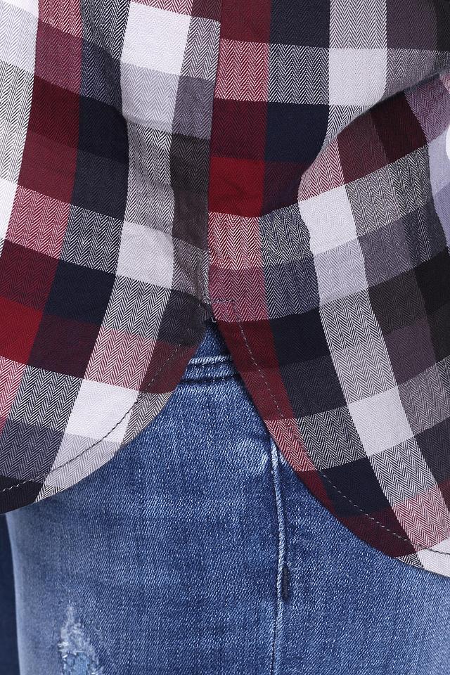 - Цвет: Универсальная бордово-серая клетка – легко сочетается с другими вещами в гардеробе.