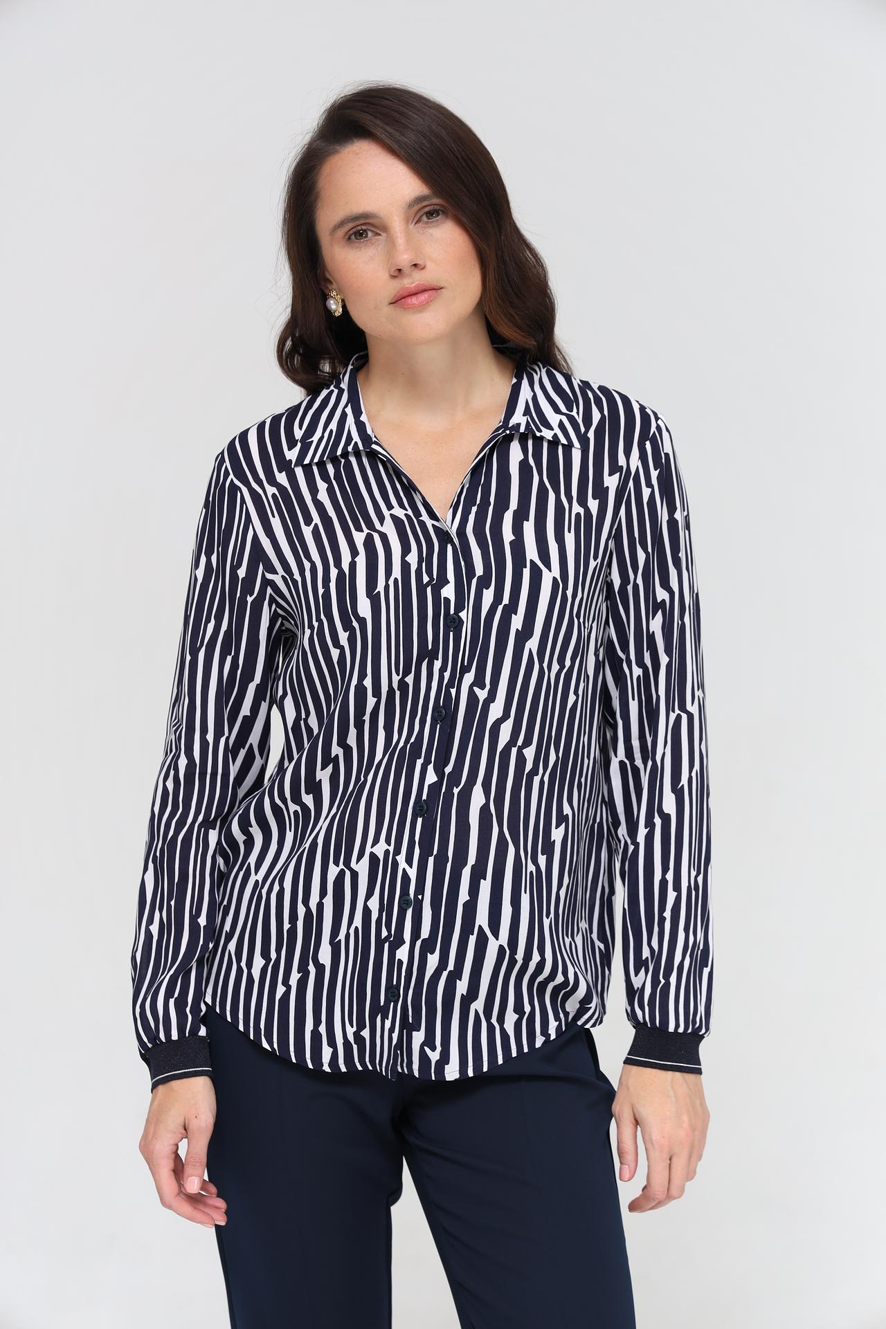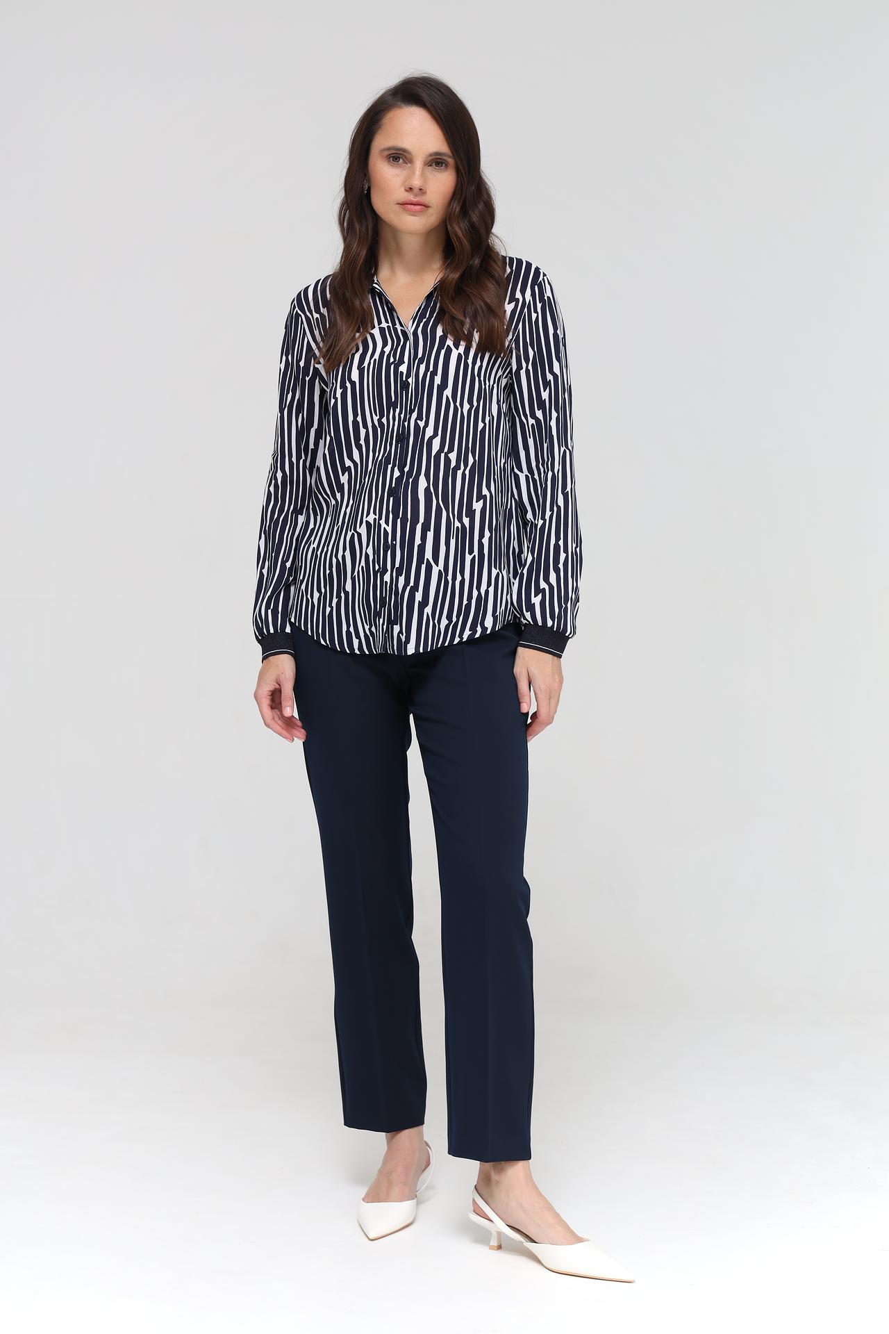 Выразительный дизайн с сине-белой полоской придает блузке неповторимый шарм. Она идеально подходит как для повседневной носки, так и для деловых встреч.