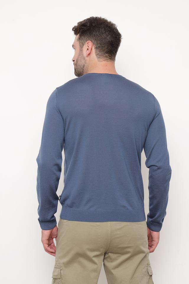 Мужской джемпер Boss Black синего цвета с V-образным вырезом. Изготовлен из 100% шерсти, обеспечивающей комфорт и тепло. Классический дизайн делает его универсальным дополнением к любому гардеробу. Состав: шерсть 100%