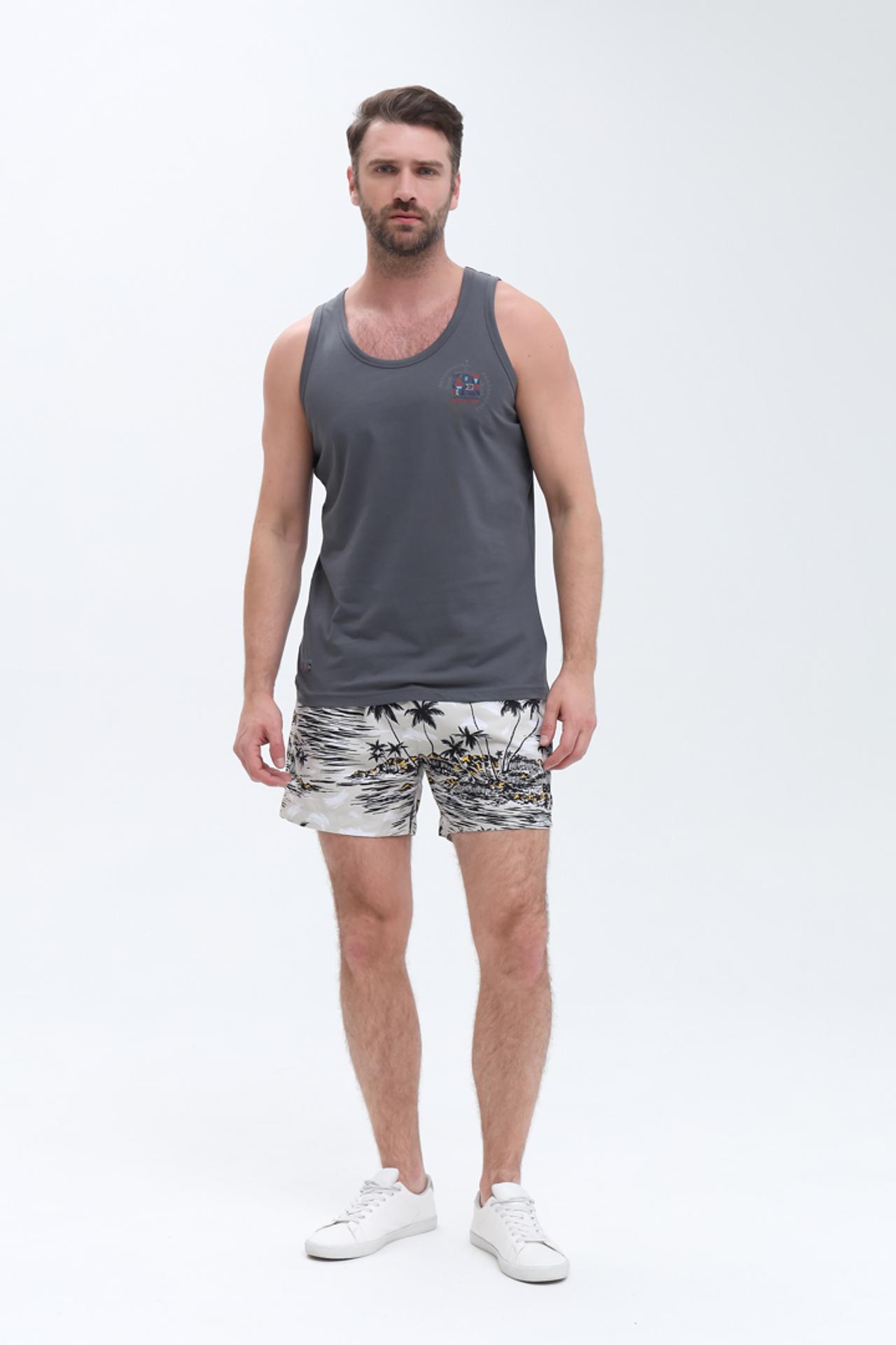 Пляжные шорты с ярким тропическим принтом добавят стильный акцент в ваш летний образ. Эластичный пояс с регулируемым шнурком гарантирует идеальную посадку по фигуре.