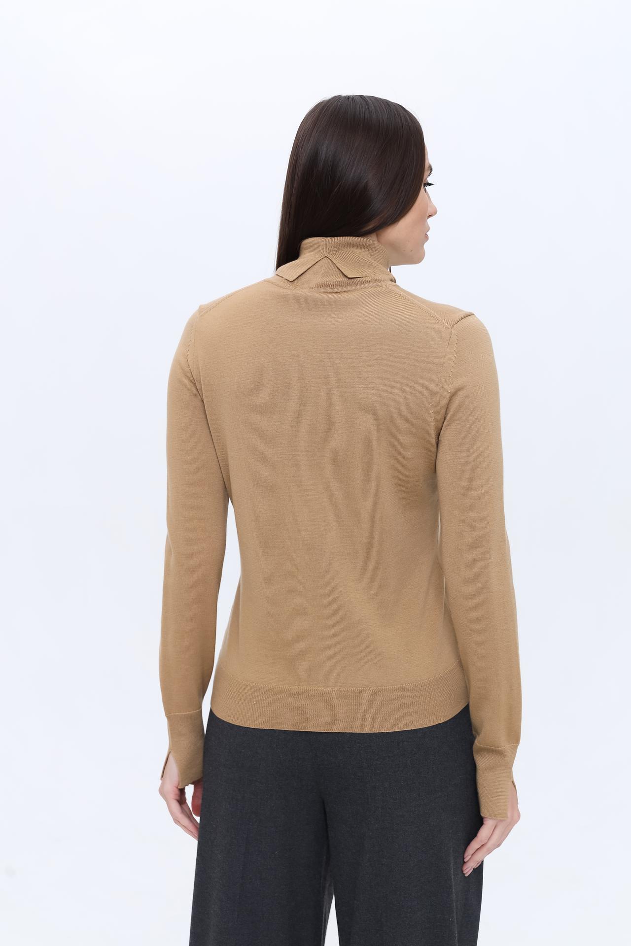 - Универсальный дизайн: Базовый бежевый оттенок и классический силуэт водолазки легко интегрируются в любой стиль, от делового до повседневного. Высокий воротник-стойка добавит образу утонченности и защитит от холода.