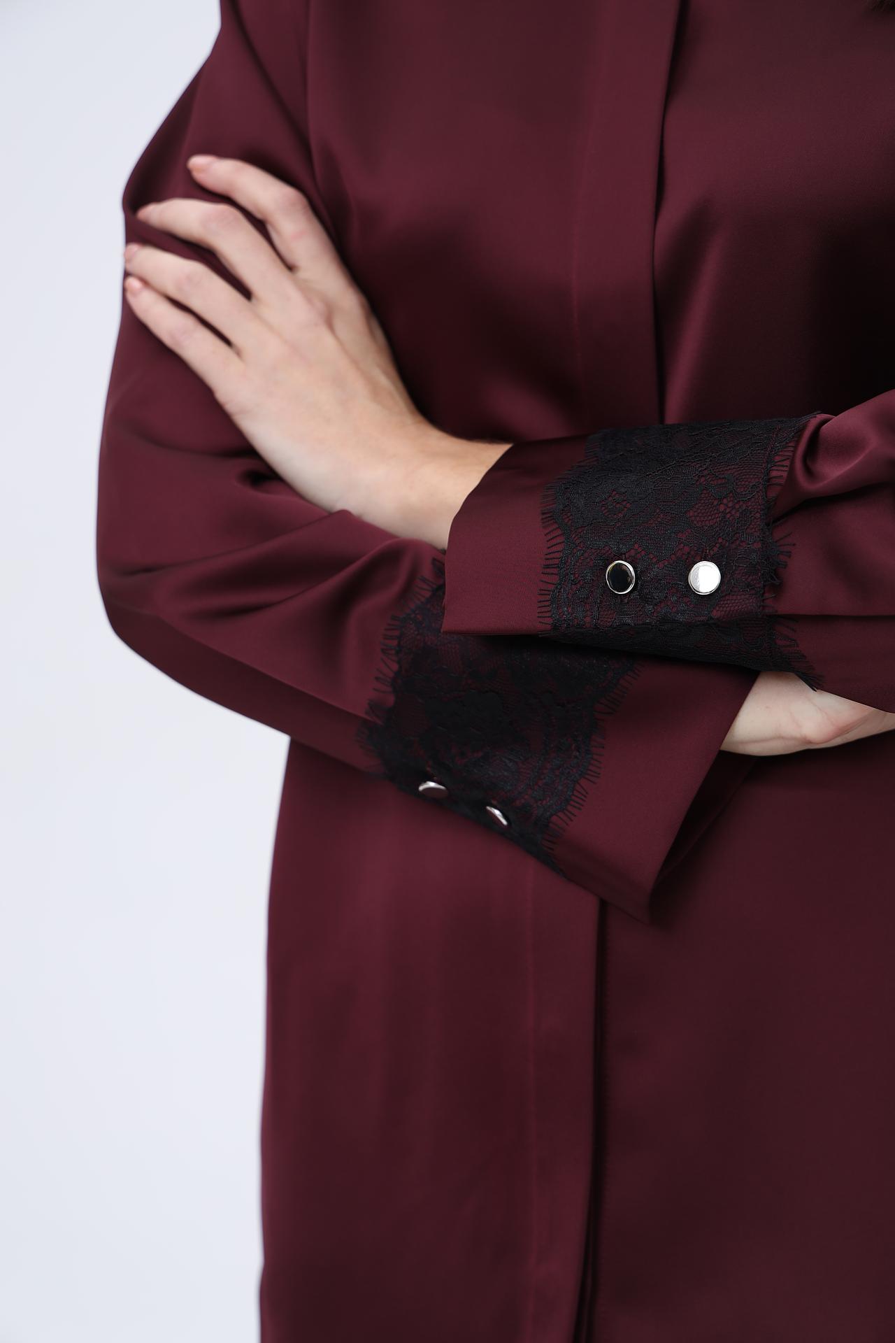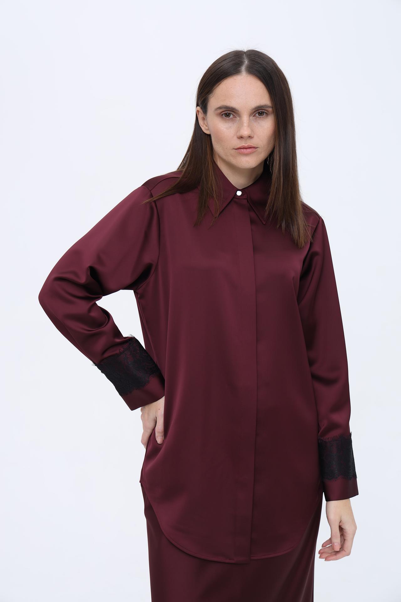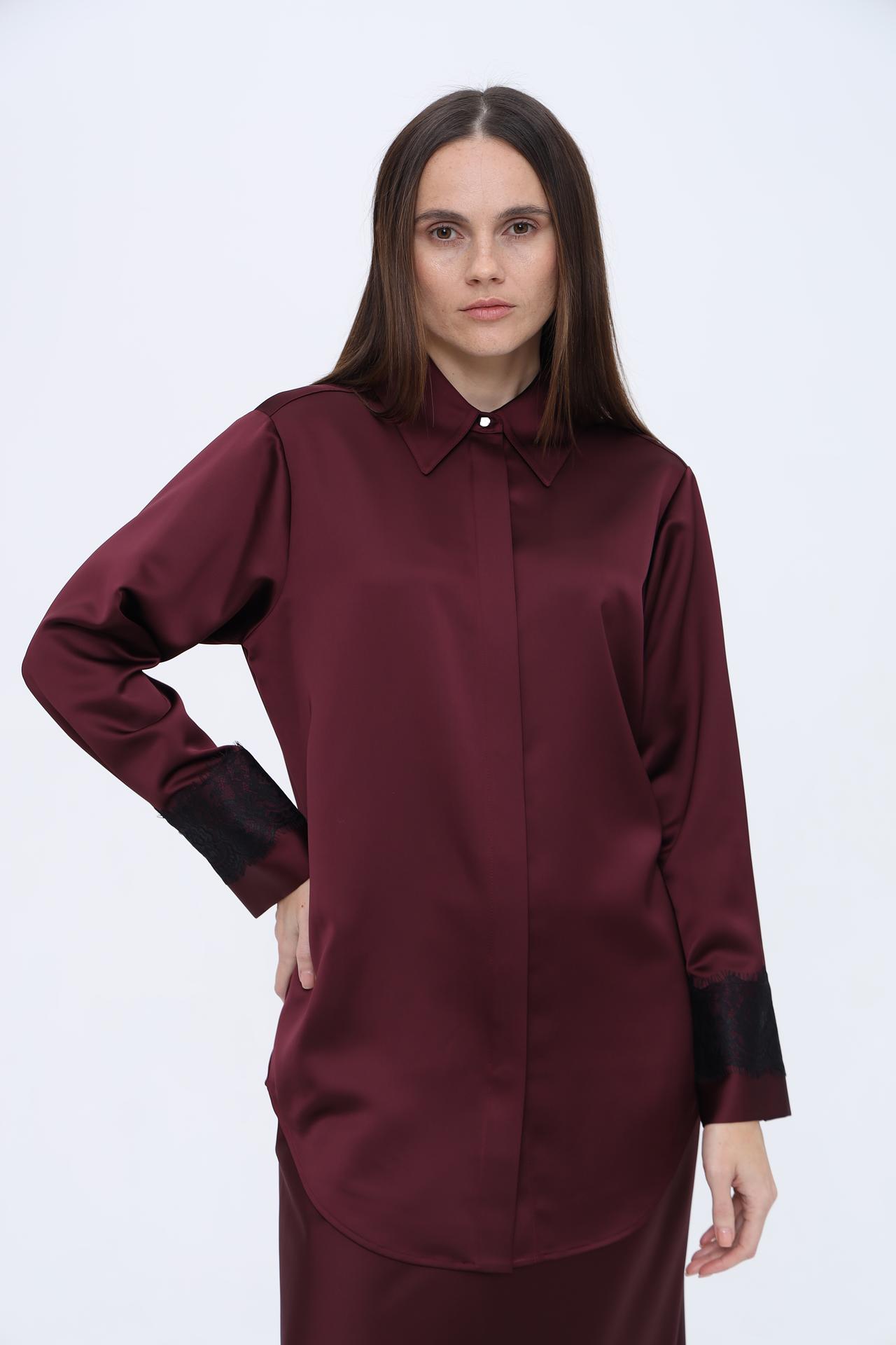 - Детали: Декоративное кружево на манжетах. Изысканное черное кружево на широких манжетах добавляет блузке женственности и индивидуальности, акцентируя внимание на запястьях.