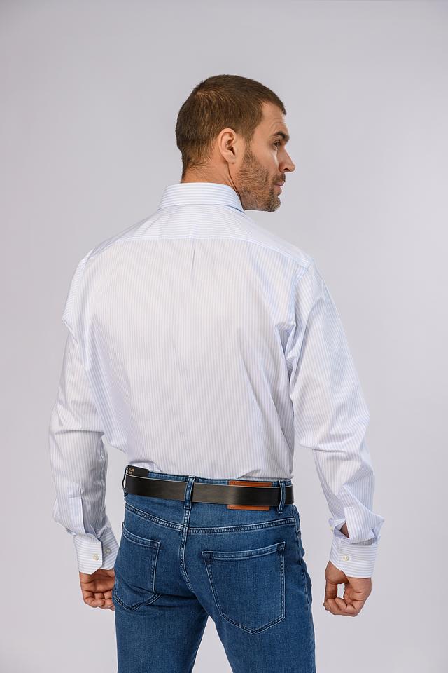 Классический воротник и манжеты с пуговицами добавляют рубашке элегантности. Пуговицы выполнены в тон ткани, что создает гармоничный образ. Рубашка идеально сочетается с брюками чинос, джинсами или классическими брюками, а также с пиджаком или кардиганом.