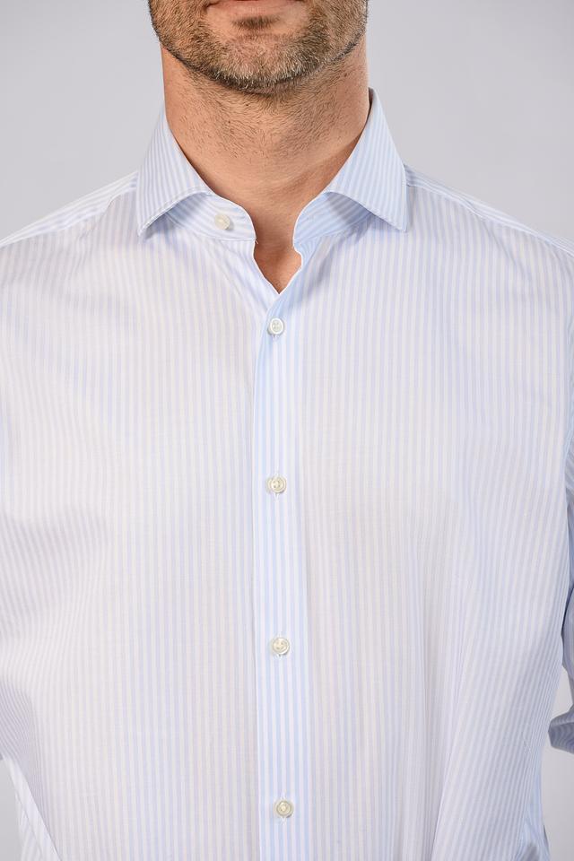 Эта рубашка от Boss Black – воплощение безупречного стиля и комфорта. Выполнена в классическом крое, который подходит для любого типа фигуры. Основной цвет рубашки – голубой, дополненный вертикальной полоской, что придает ей изысканность и свежесть.