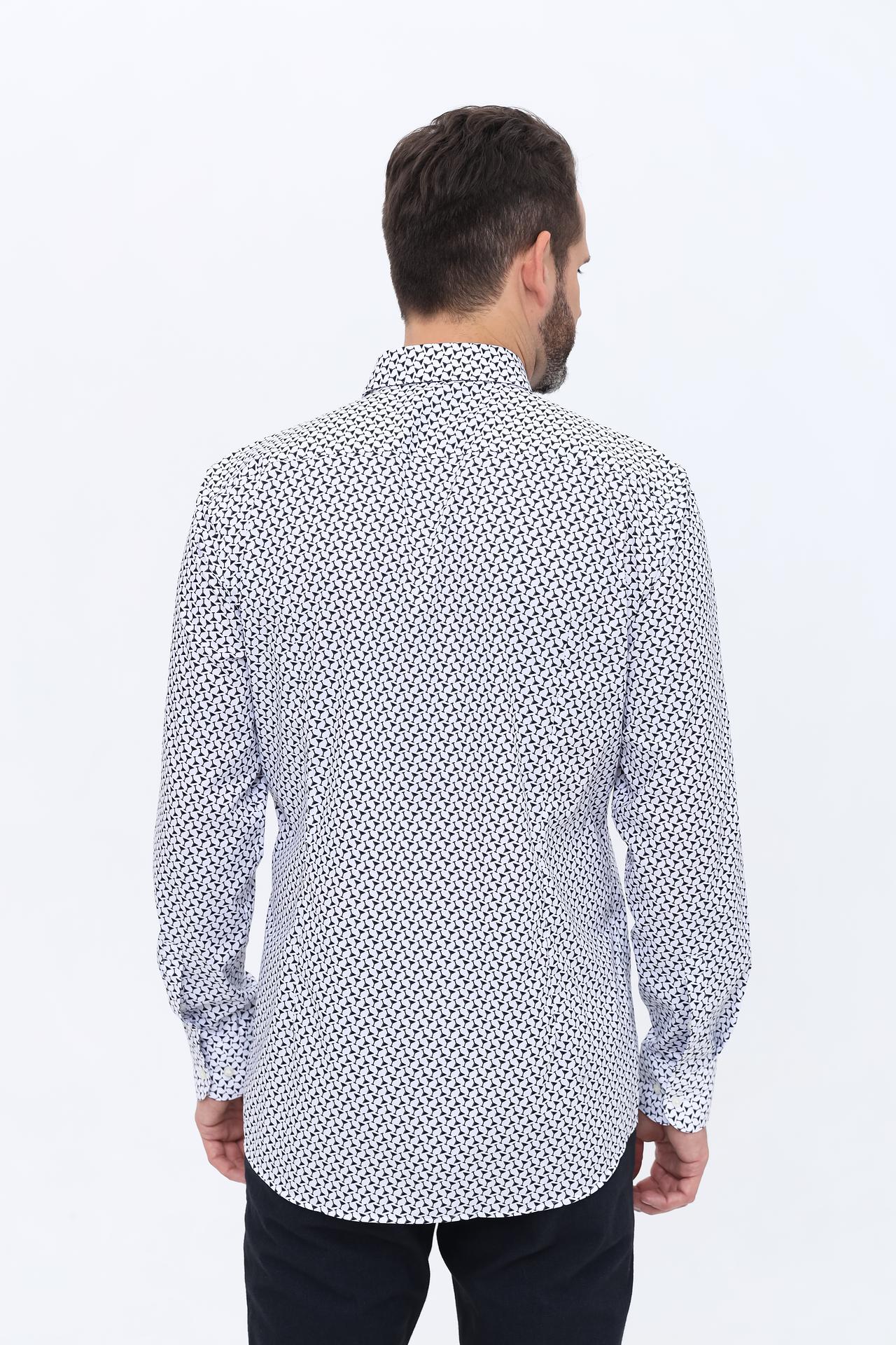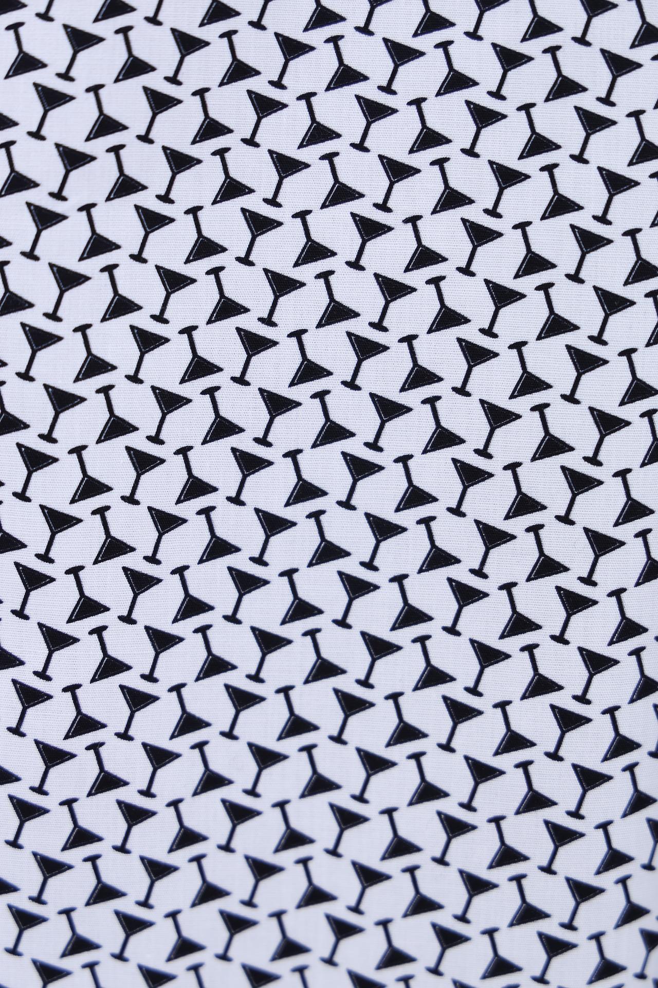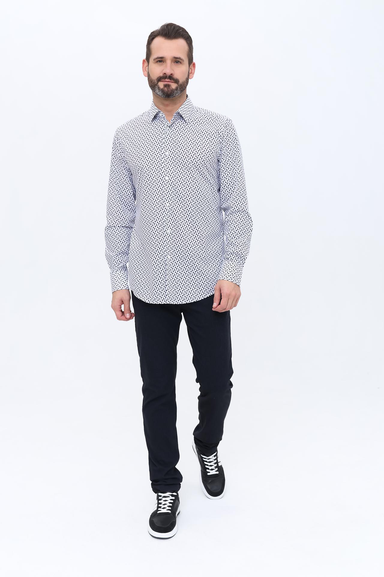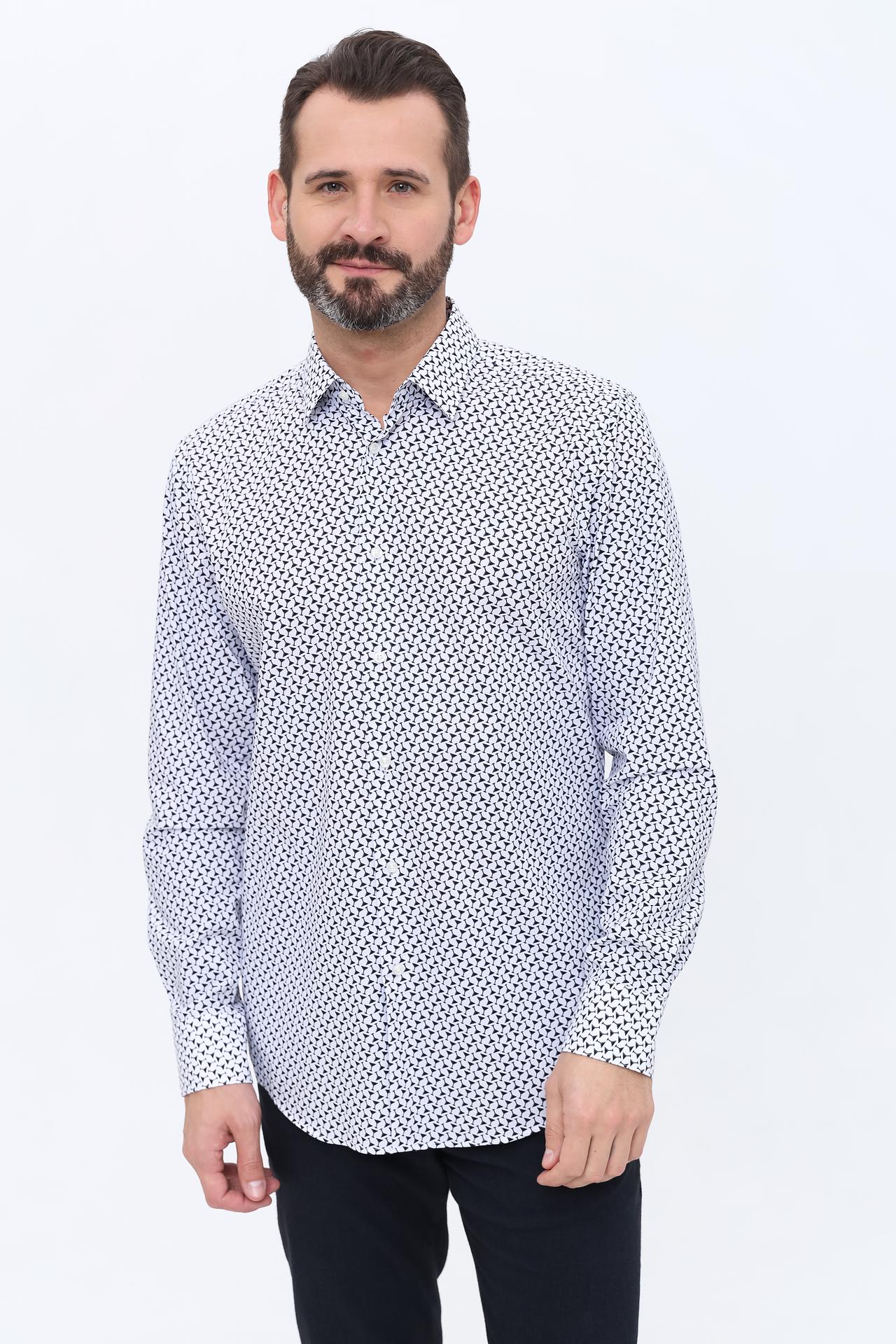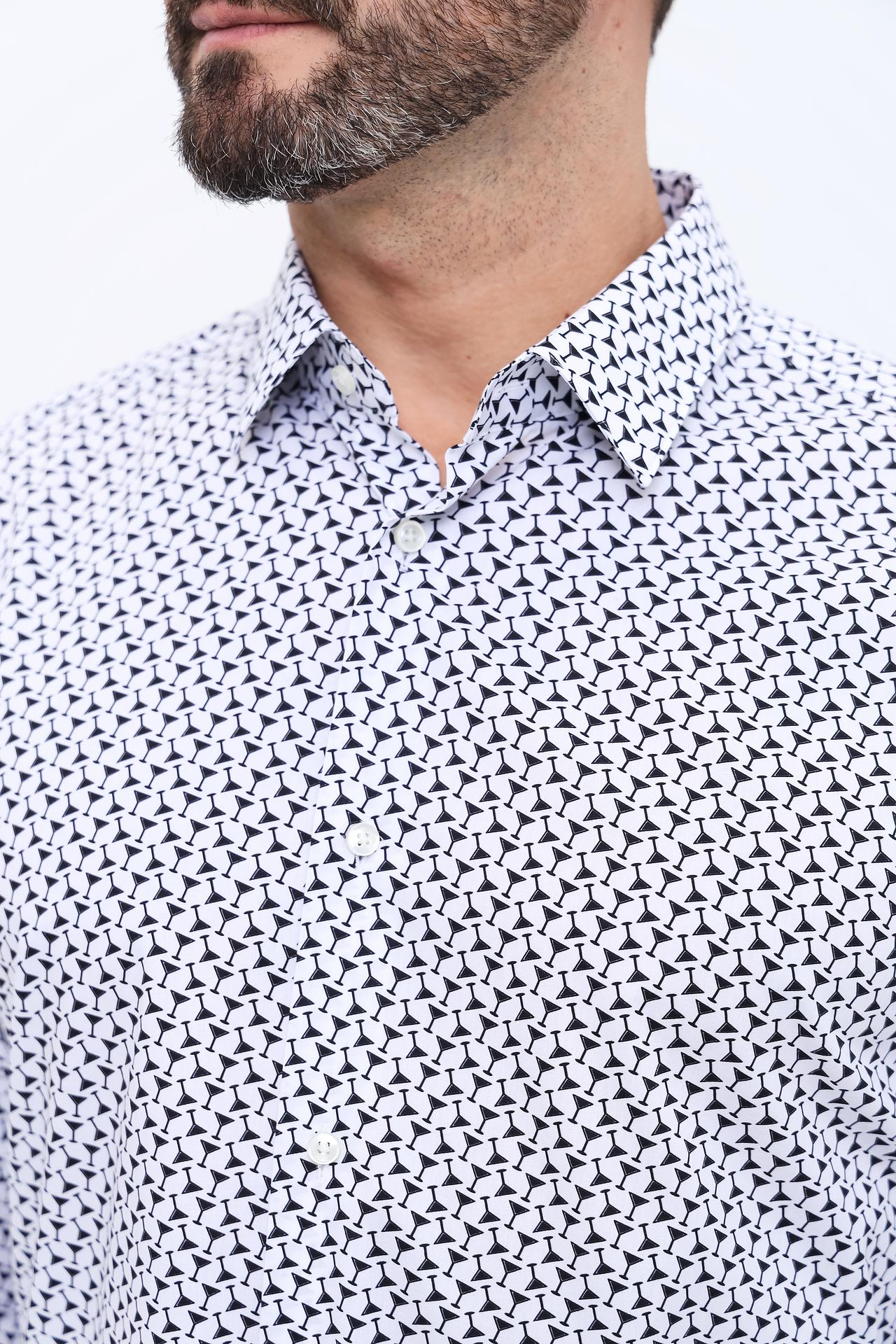 Белый цвет изделия и оригинальный принт делают эту рубашку прекрасным дополнением к вашему повседневному образу. Она идеально подходит как для офиса, так и для неформальных встреч.