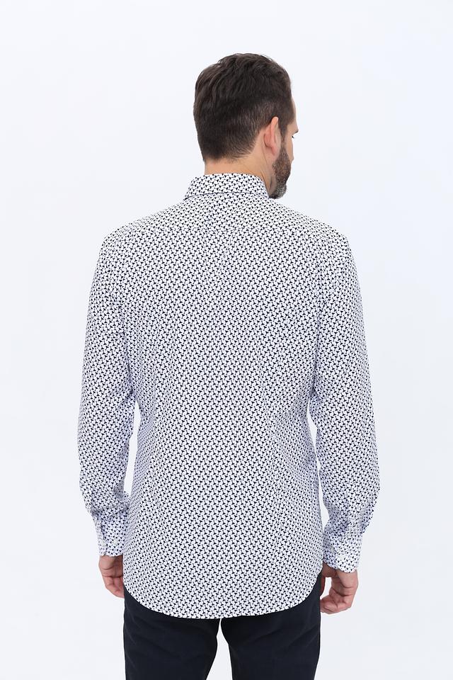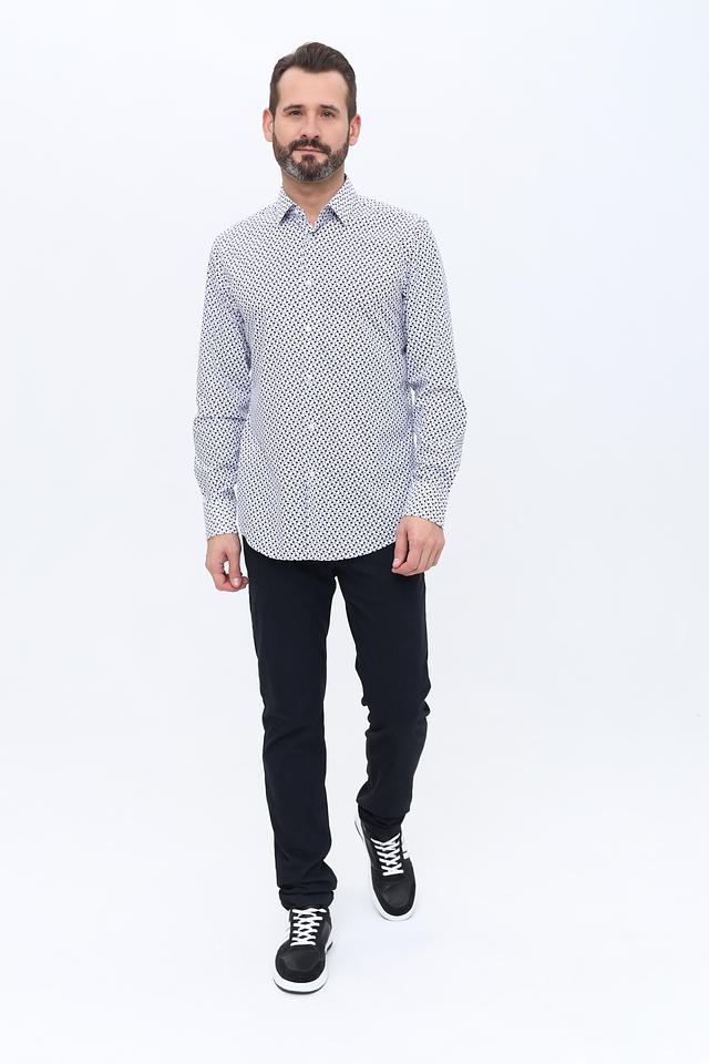 Мужская рубашка Boss Black белого цвета с оригинальным принтом. Классический крой и состав из хлопка с добавлением эластана обеспечивают комфорт и удобство в носке. Состав: хлопок 96%, эластан 4%