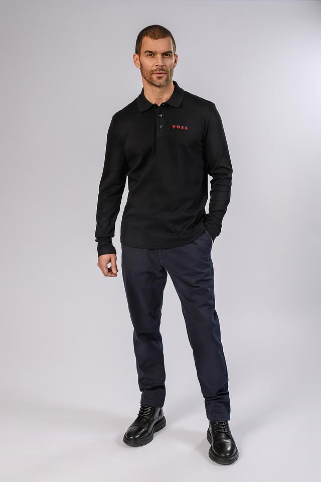 Чёрное поло от Boss Black с длинным рукавом, украшенное вышитым логотипом бренда. Изготовлено из высококачественного хлопка, обеспечивающего комфорт и удобство в носке. Идеальный выбор для создания стильного и элегантного образа. Состав: хлопок 100%