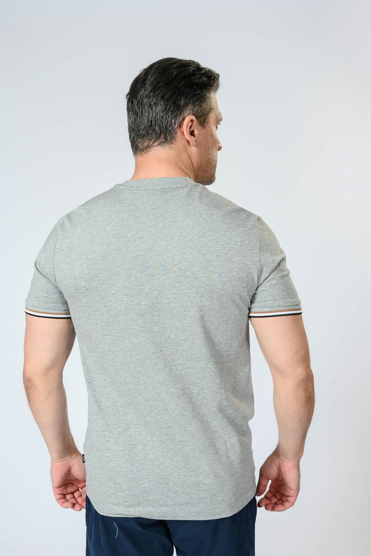 Футболка Boss Black – идеальный выбор для создания непринужденного и стильного образа. Модель выполнена из 100% хлопка, что обеспечивает максимальный комфорт и воздухопроницаемость в течение всего дня. Классический крой и универсальный серый цвет делают эту футболку незаменимой в любом гардеробе. Аккуратные декоративные полоски на манжетах рукавов добавляют изысканности и подчеркивают ваш безупречный вкус. Эта футболка отлично сочетается как с джинсами, так и с шортами, создавая множество вариаций для повседневных и более расслабленных образов.