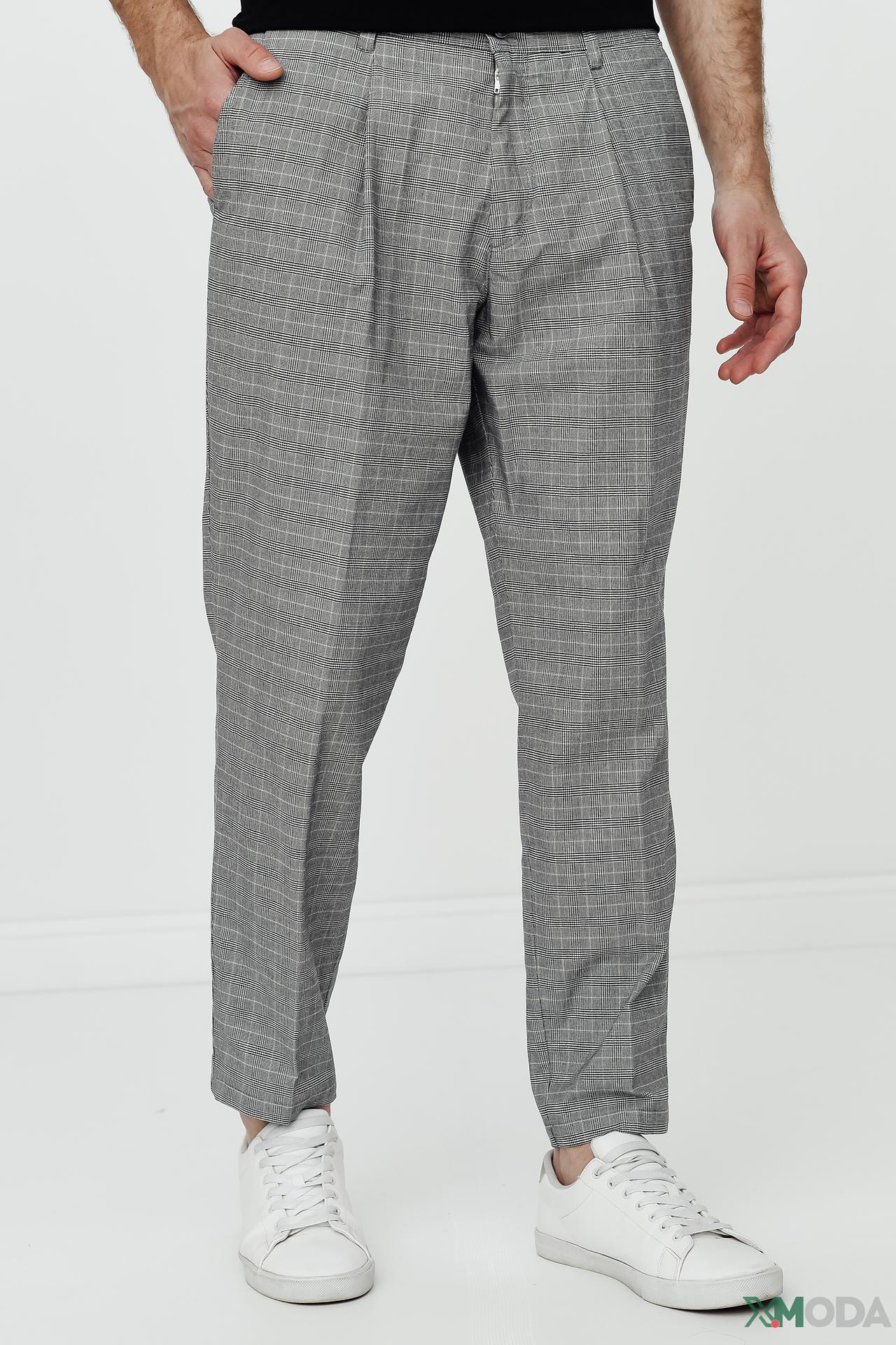 - Дизайн: Классический крой с умеренным сужением к низу и актуальный принт в клетку. Детали, такие как стрелки и наличие карманов, подчеркивают элегантность изделия.