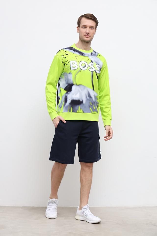 Мужской лонгслив Boss Green лаймового цвета с эффектным принтом логотипа бренда. Изготовлен из 100% хлопка, обеспечивающего комфорт и воздухопроницаемость. Стильный и удобный выбор для повседневного образа. Состав: хлопок 100%
