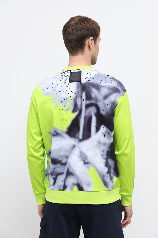 На спине также присутствует принт с логотипом бренда, что добавляет изделию завершенности. Небольшой логотип Boss Green расположен на горловине сзади.