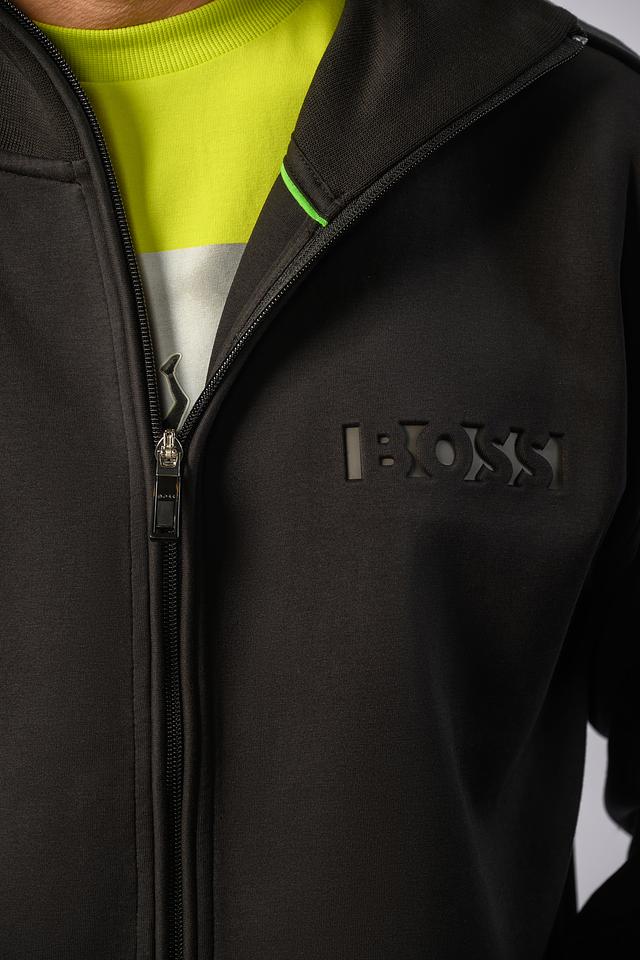 Чёрный кардиган Boss Green на молнии – стильная и комфортная модель для повседневной носки. Изготовлен из мягкого трикотажа с добавлением хлопка и полиэстера, обеспечивающего удобство и практичность. Состав: хлопок 79%, полиэстер 16%, эластан 5%
