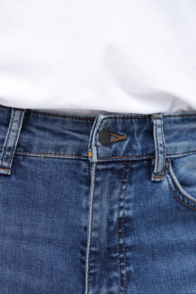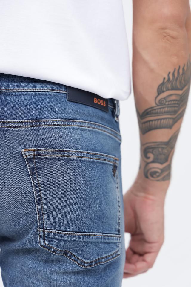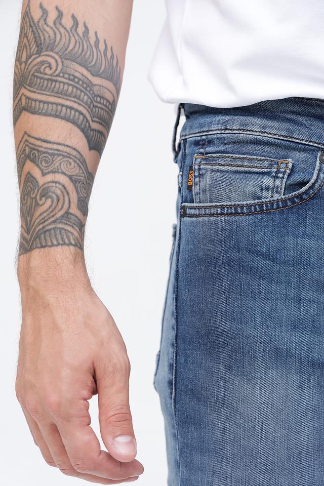 Представляем вашему вниманию мужские джинсы от бренда Boss Orange. Модель выполнена в классическом синем цвете с эффектом потертостей и легким выцветанием, что придает ей актуальный и современный вид.