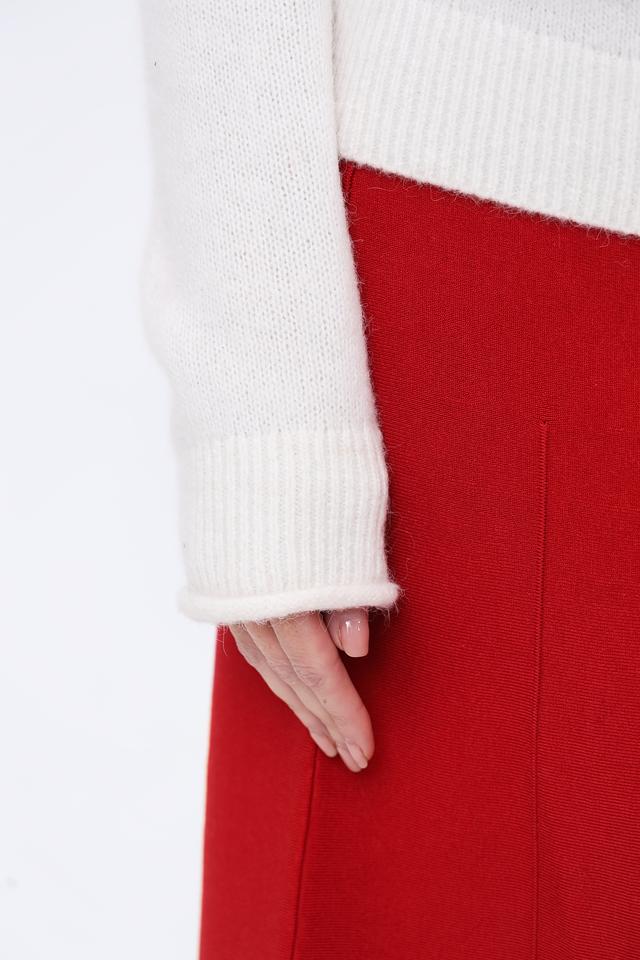 Джемпер имеет классический крой с круглым вырезом горловины и длинными рукавами. Изготовлен из высококачественной пряжи, в состав которой входит шерсть (52%), полиамид (26%) и альпака (22%). Такое сочетание материалов обеспечивает мягкость, тепло и долговечность изделия.