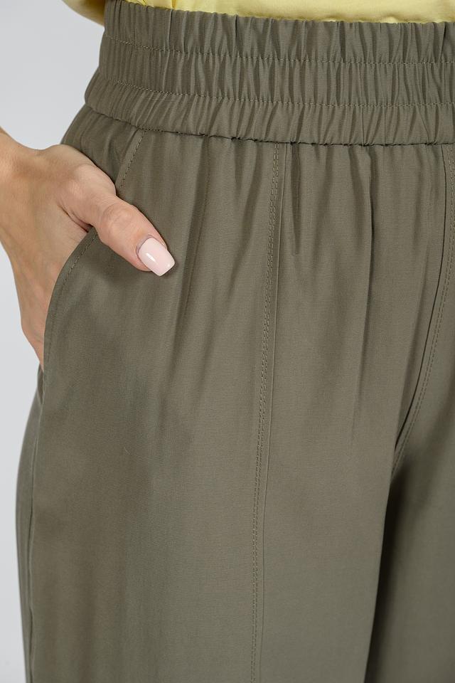 Брюки имеют свободный крой и эластичный пояс на талии, что обеспечивает максимальный комфорт в носке. Наличие боковых карманов добавляет функциональности. Модель выполнена из качественной вискозы с добавлением полиэстера, благодаря чему брюки хорошо держат форму и приятны к телу.
