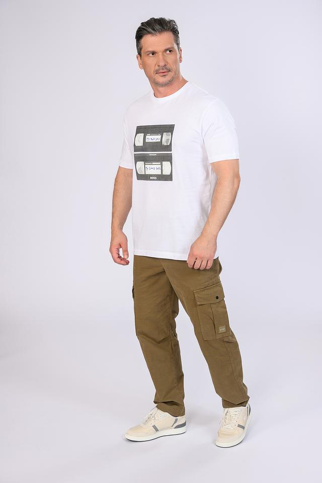 Мужские брюки карго Boss Orange хаки цвета — удобная и практичная модель на каждый день. Брюки прямого кроя с накладными карманами и логотипом бренда. Состав: хлопок 98%, эластан 2%