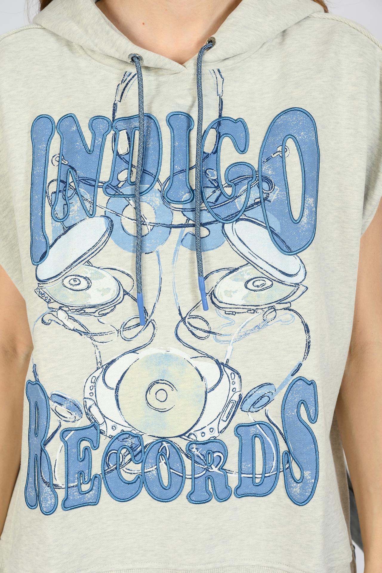- Дизайн: Современный крой без рукавов с капюшоном и стильным принтом. Оригинальный принт "INDIGO RECORDS" подчеркнет вашу индивидуальность.