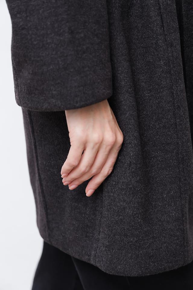 Благодаря своему лаконичному дизайну и универсальному графитовому цвету, это пальто станет отличным дополнением к вашему гардеробу и подойдет для различных случаев – от повседневной носки до деловых встреч.
