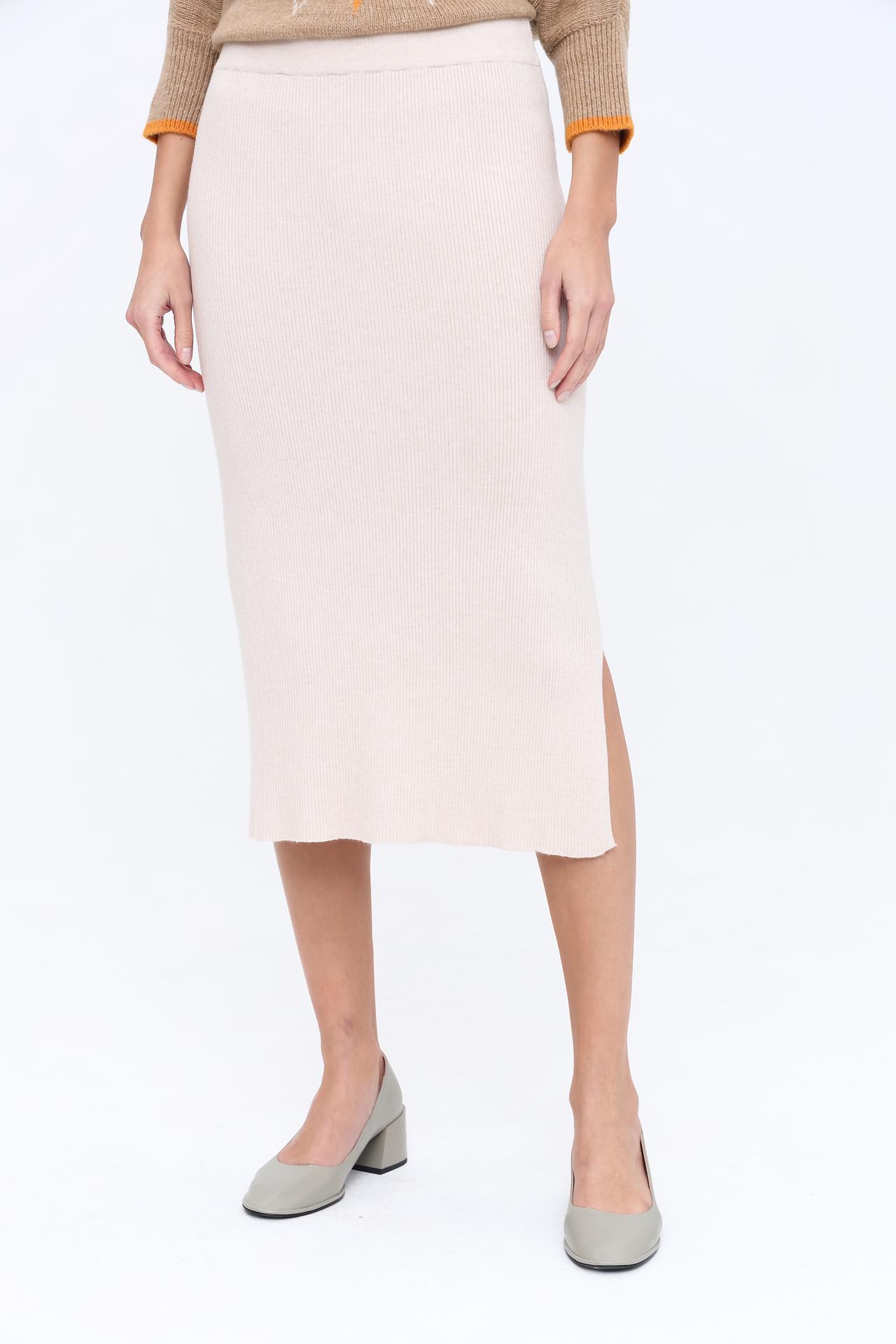 Юбка-карандаш Broadway бежевая вязаная с разрезом