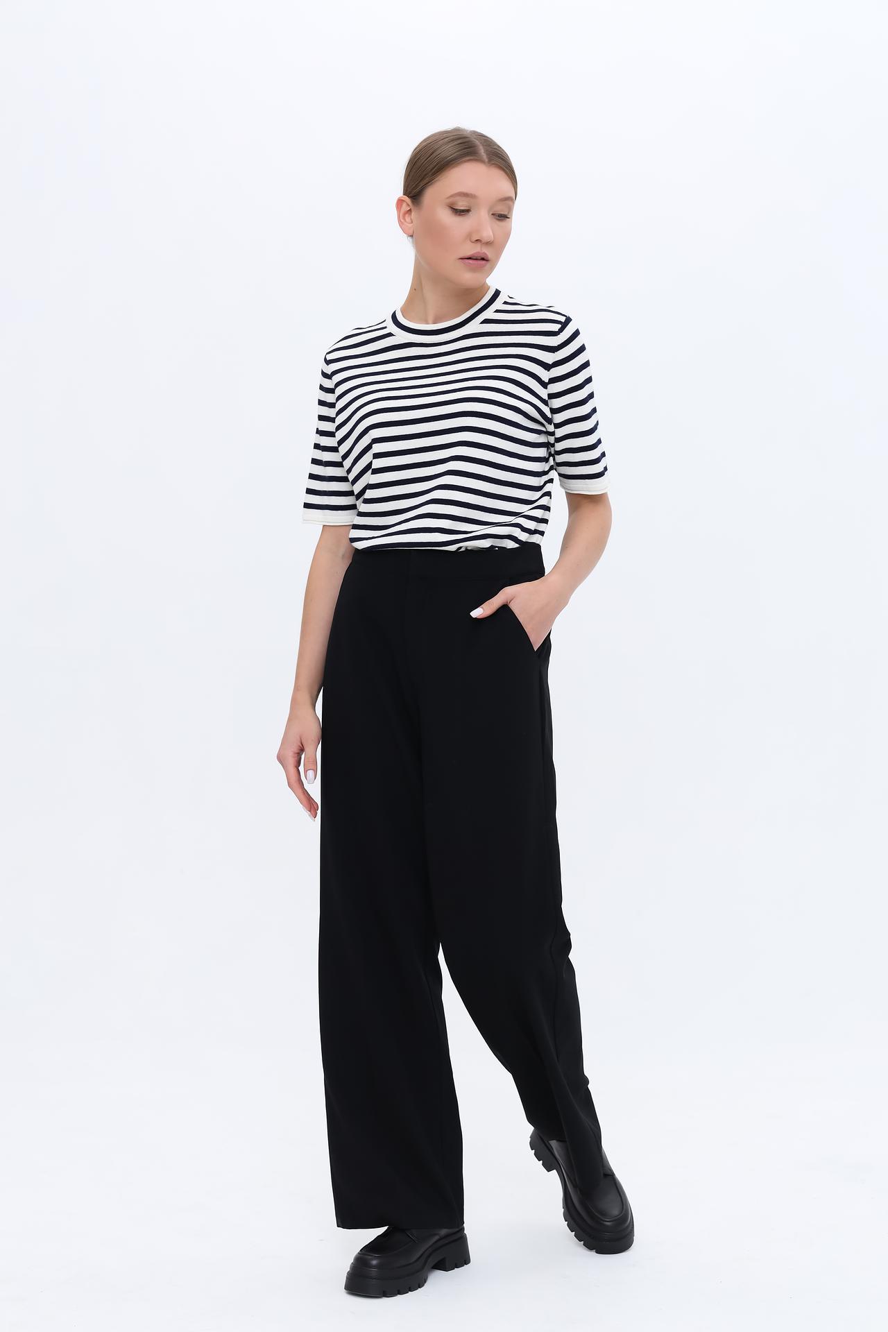 - Универсальность: Брюки легко сочетаются с различным верхом, от базовых футболок до элегантных блуз, подходя как для офиса, так и для вечерних выходов.